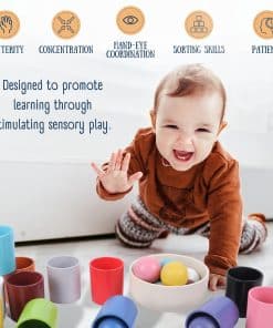 Descubre un nuevo mundo de diversión creativa con los juguetes Waldorf de juego abierto CURIOUS MELODIES. Creamos una colección de juguetes de apilamiento, inspirados en el juego sensorial Montessori, para fomentar la creatividad y el juego imaginativo. Nuestros juguetes Montessori de Bolas Arcoíris en Copas son seguros para todas las edades y están fabricados con pintura no tóxica a base de agua, sin plomo, sin ftalatos y certificados por CPSC de EE. UU. Cada árbol de juguete de madera está libre de astillas y tiene bordes redondeados, lo que ayudará al desarrollo de habilidades motoras finas, lógica y razonamiento de su hijo. ¡Mantén entretenidos a los niños durante horas con nuestros bloques de alta calidad que durarán años por venir!