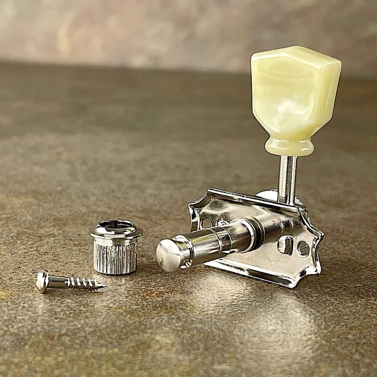 Juego de Clavijas de Afinación con Bloqueo Gotoh SD90-MGT Estilo Vintage 3X3 Clavijas de afinación con bloqueo Perilla de bloqueo en la parte trasera Botones tipo keystone de plástico Relación de engranaje 15:1 Con Hardware NÍQUEL