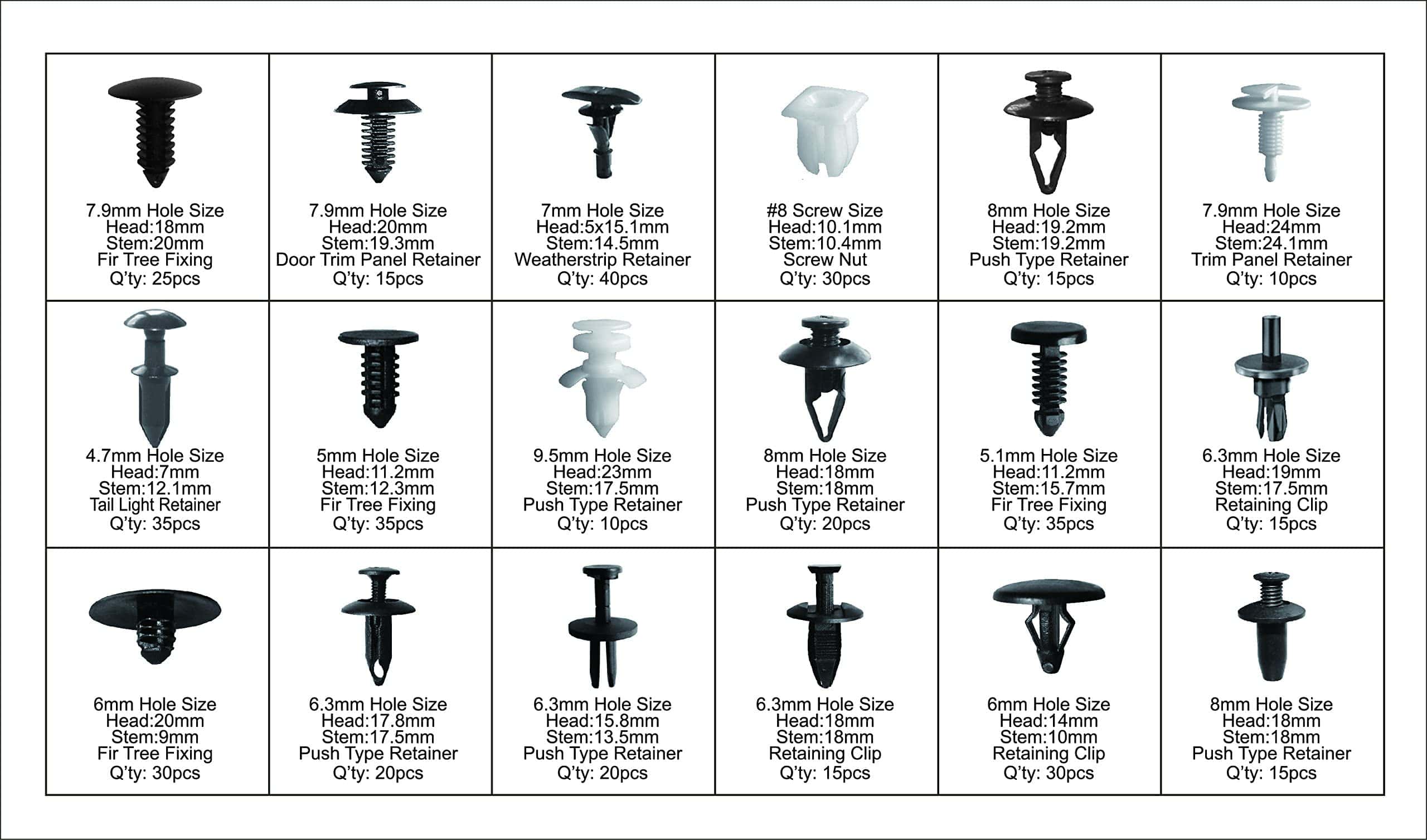 Swordfish 60210-415 piezas de clips de sujeción de carrocería para automóviles, sujetadores y surtido de clips para vehículos Ford. Incluye un organizador conveniente con inserto ilustrado para una referencia rápida de las piezas. Construido con nylon de la más alta calidad para una instalación OEM exacta, ajuste y acabado. Mantenga su vehículo Ford en óptimas condiciones y asegúrese de tener las piezas adecuadas a su alcance para cualquier trabajo de reparación o mantenimiento necesario.