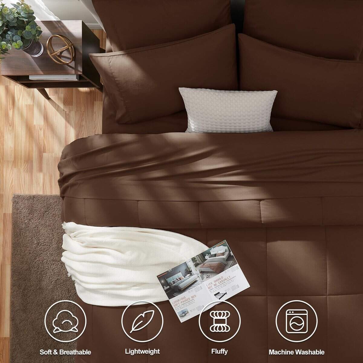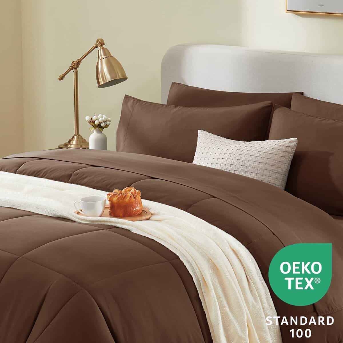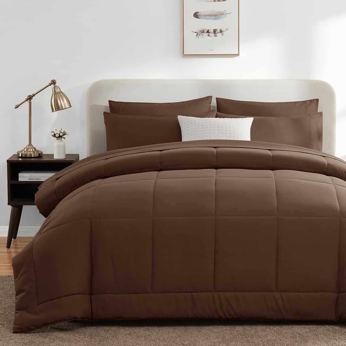 Juego de Cobertor Completo CozyLux Marrrón para Cama