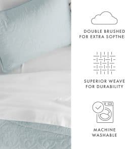 La elegancia casual se encuentra con el confort puro e intransigente con este Cobertor Acolchado Premium de Simply Soft. Seguro de cumplimentar cualquier estilo de dormitorio, este hermoso cobertor está disponible en tres patrones atemporales y seis colores vintage cautivadores. El Cobertor Simply Soft está hilado a partir de nuestros hilos de microfibra Premium, ofreciendo el doble de durabilidad que el algodón y es 100% hipoalergénico. Disfrute de un mantenimiento fácil con esta belleza premium lavable a máquina, resistente a las arrugas y a las manchas. Verdaderamente un Cobertor para Todas las Estaciones, lo mantendrá cálido en el invierno y fresco en el verano. El Cobertor Acolchado Premium de Simply Soft seguramente añadirá el toque final a su oasis de dormitorio tranquilo. GUÍA DE TAMAÑO: El juego Twin / Twin Extra Long incluye: 1 Cobertor Acolchado: 68″W x 90″L. 1 Funda de Almohada: 20″W x 26″L. El juego completo / Queen incluye: 1 Cobertor Acolchado: 90″W x 92″L. 2 Fundas de Almohada: 20″W x 26″L. El juego King / California King incluye: 1 Cobertor Acolchado: 106″W x 96″L. 2 Fundas de Almohada: 20″W x 36″L