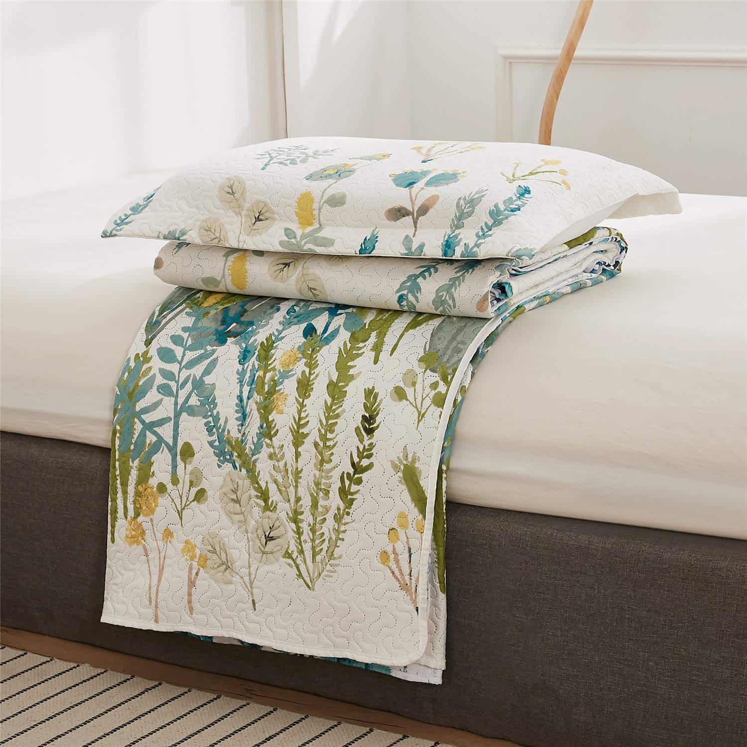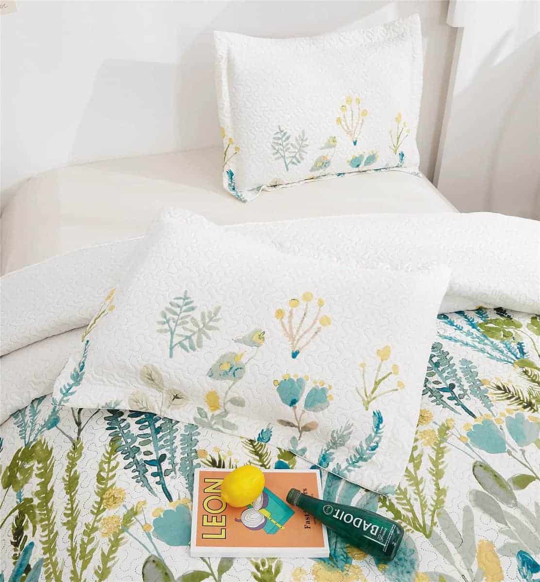 Juego de cobertor de cama Ycosy tamaño king set de ropa de cama reversible juego de colchas floral juego de colchas livianas con hojas verdes en relieve decoración de cama para todas las estaciones. Este juego de colchas importado es perfecto para añadir un toque de color y elegancia a su dormitorio. El juego incluye una colcha king size de 96 x 108 pulgadas y 2 fundas de almohada de 20×36 pulgadas más un amplio margen para un ajuste perfecto. Con hermosos diseños de flores impresas en colores vibrantes en ambos lados, este juego de colchas es altamente recomendado para la decoración de su dormitorio. La colcha cubre fácilmente todos los lados y extremos de su cama, con patrones brillantes y hermosas flores que le brindarán sueños felices y dulces. Para su comodidad, se recomienda lavar antes de usar, y es apto para lavar a máquina en agua fría y secar a baja temperatura. Añada este impresionante juego de colchas a su cama para una apariencia elegante y acogedora durante todas las estaciones.