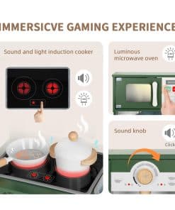 Cocina avanzada todo en uno con tamaño compacto: El set de cocina para niños con más de 9 funciones, además con altura ajustable, brinda a los niños años de compañía con diversión sin fin. Diseñado con un tamaño compacto, es adecuado para la habitación de los niños, sala de juegos, guardería y muchos otros escenarios.