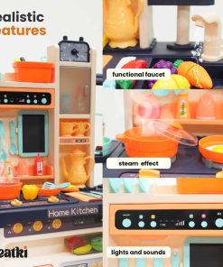 ¡Presentamos el Juego de Cocina Deluxe para Niños de Neatki – un mundo de aventuras culinarias imaginativas espera a tus pequeños! Este cautivador set incluye 65 juguetes de cocina diseñados para niños pequeños, ofreciendo diversión interminable y juego creativo. Con su grifo funcional, efectos de vapor realistas, luces y sonidos cautivadores, y una encantadora variedad de accesorios de cocina, el tiempo de juego de tu hijo estará lleno de exploración alegre. Deja que su imaginación vuele mientras cocinan deliciosas comidas ficticias en este encantador set de cocina azul.