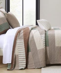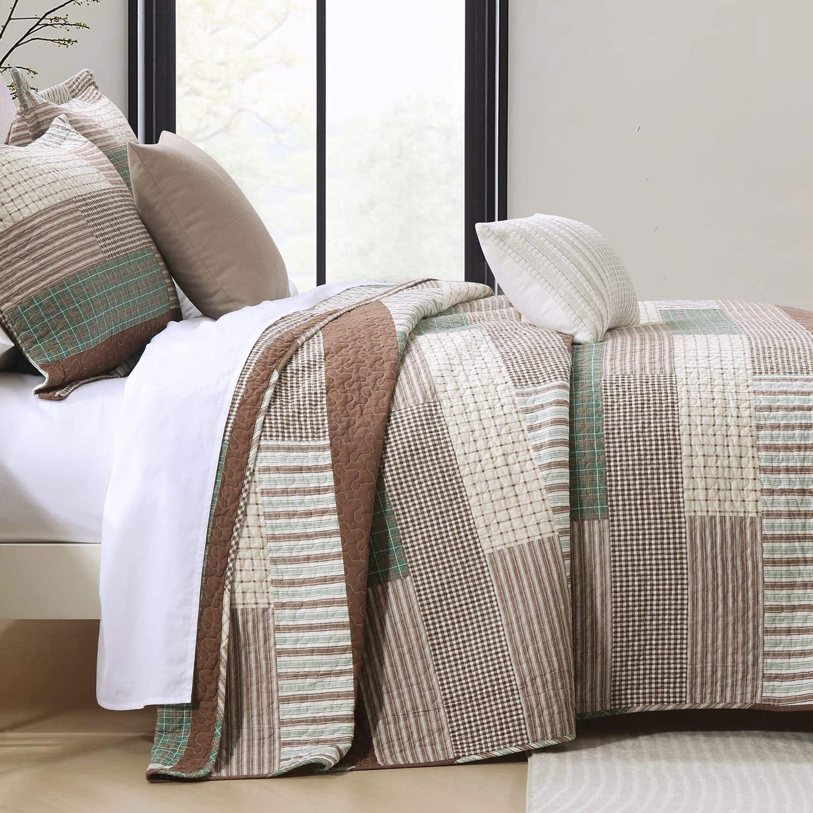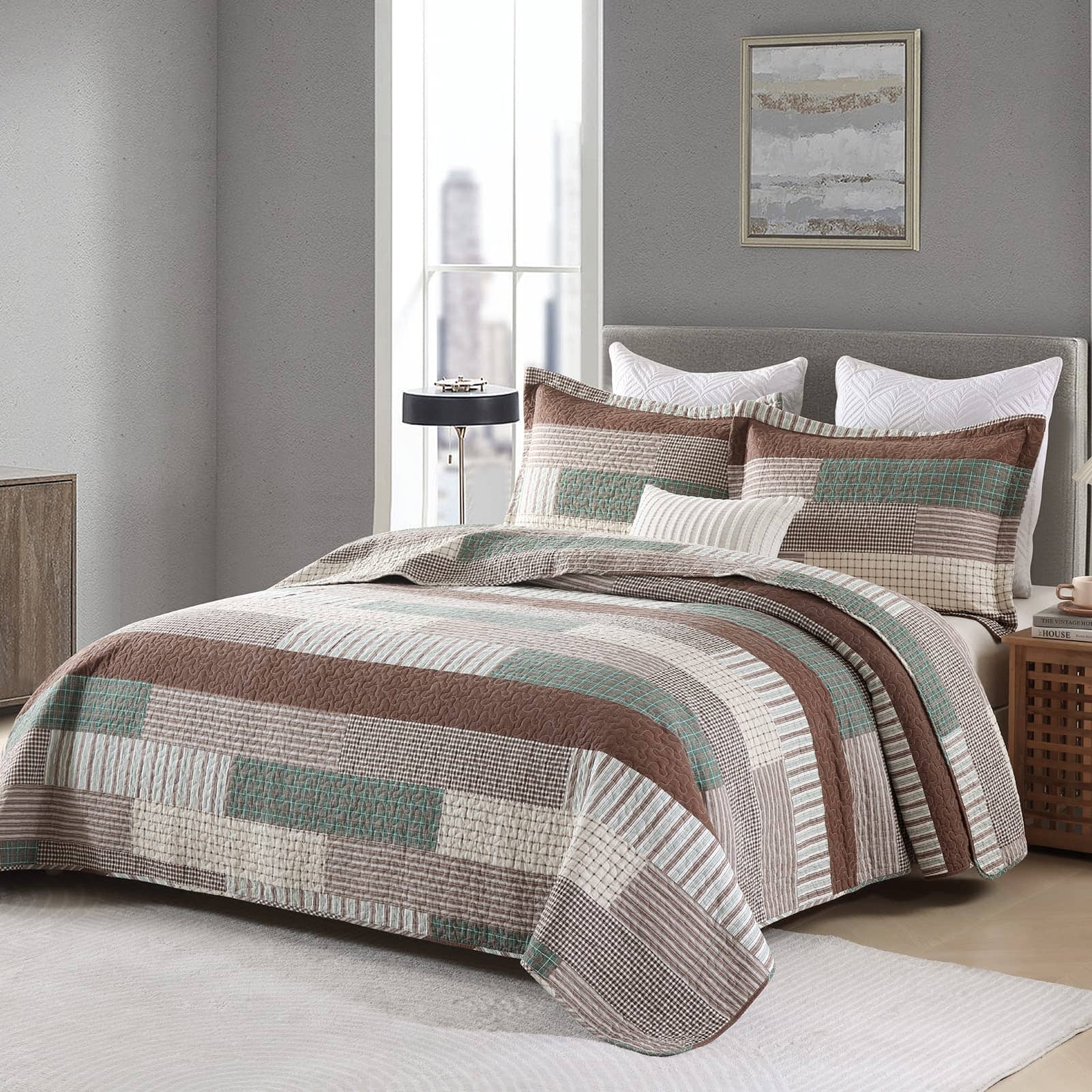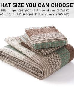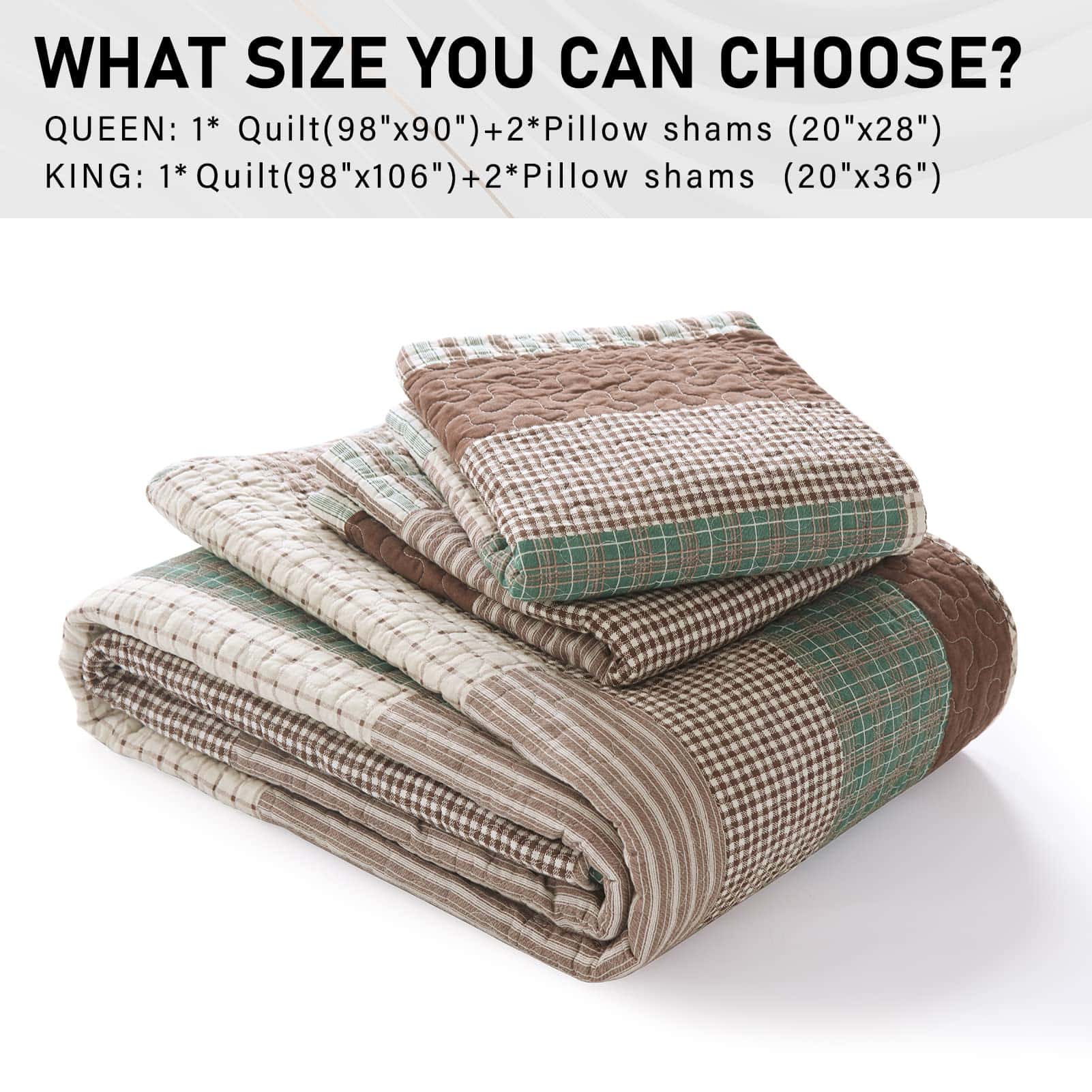 2. COLCHA A CUADROS TAMAÑO QUEEN: Una combinación de patrón de retazos a cuadros embellece aún más el diseño de color café, verde y blanco, haciéndolo más único y elegante, la mejor opción para la decoración de tu dormitorio de estilo luminoso o campestre.