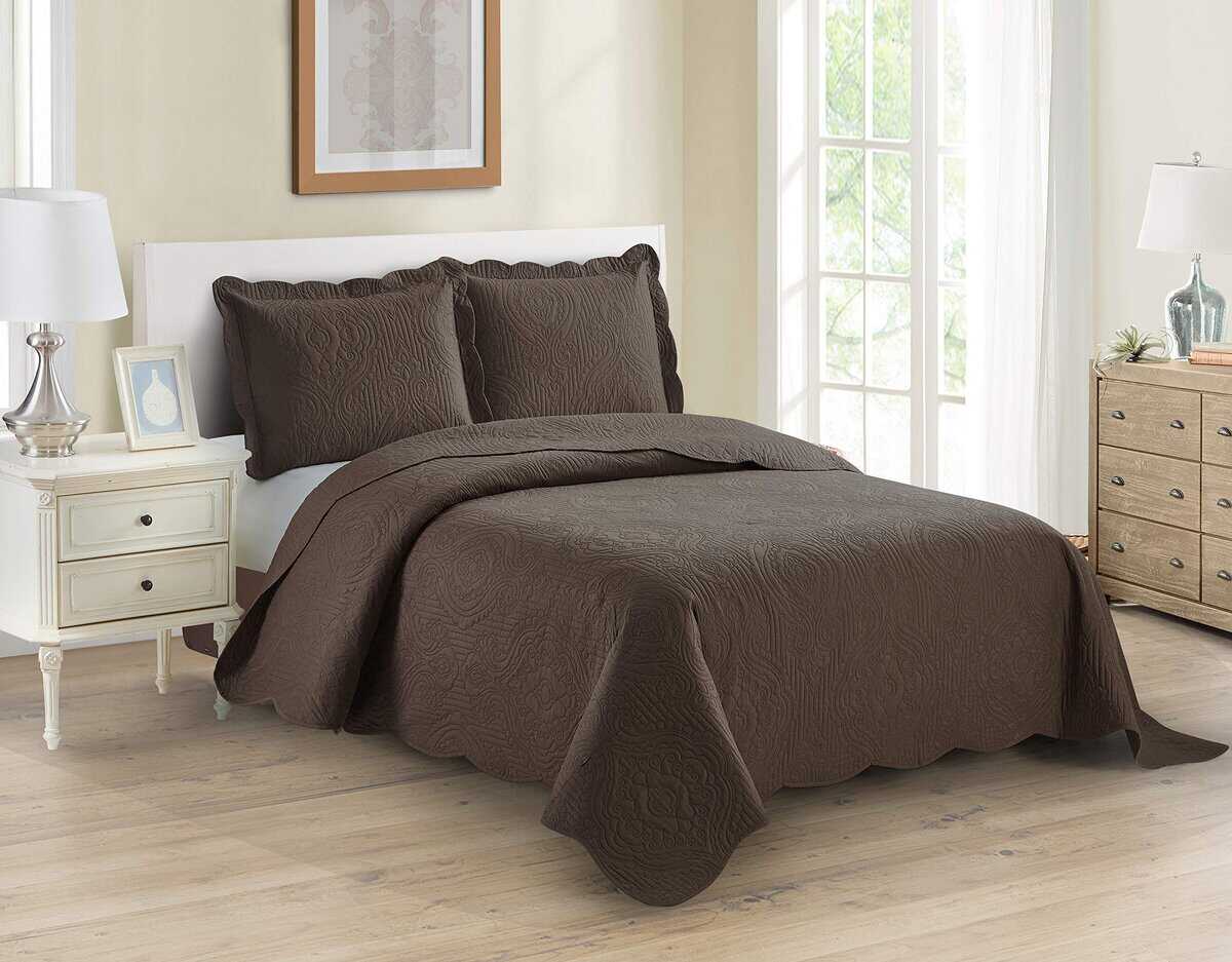 Juego de Colcha 3 piezas King/Cal King de Lujo -Café Oscuro