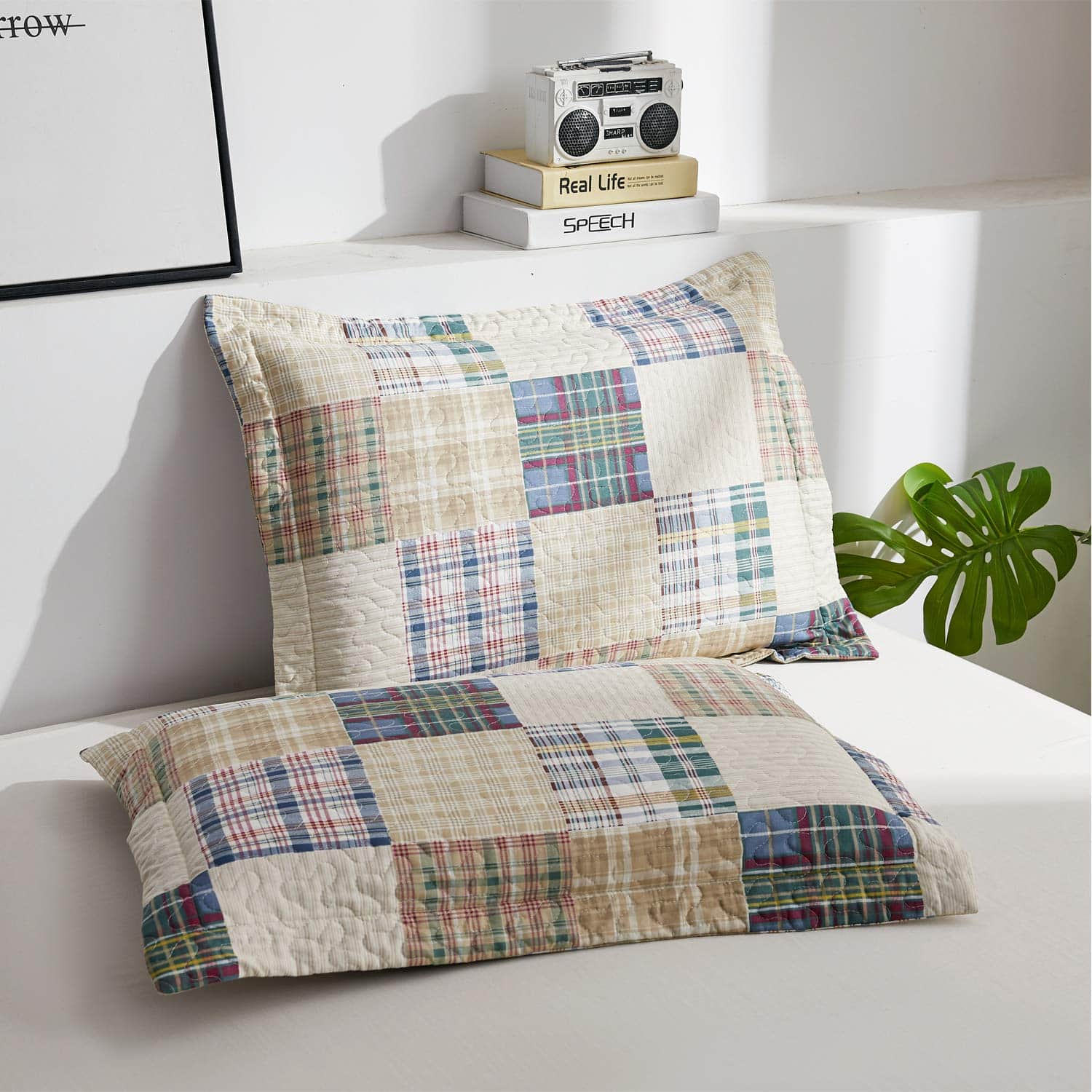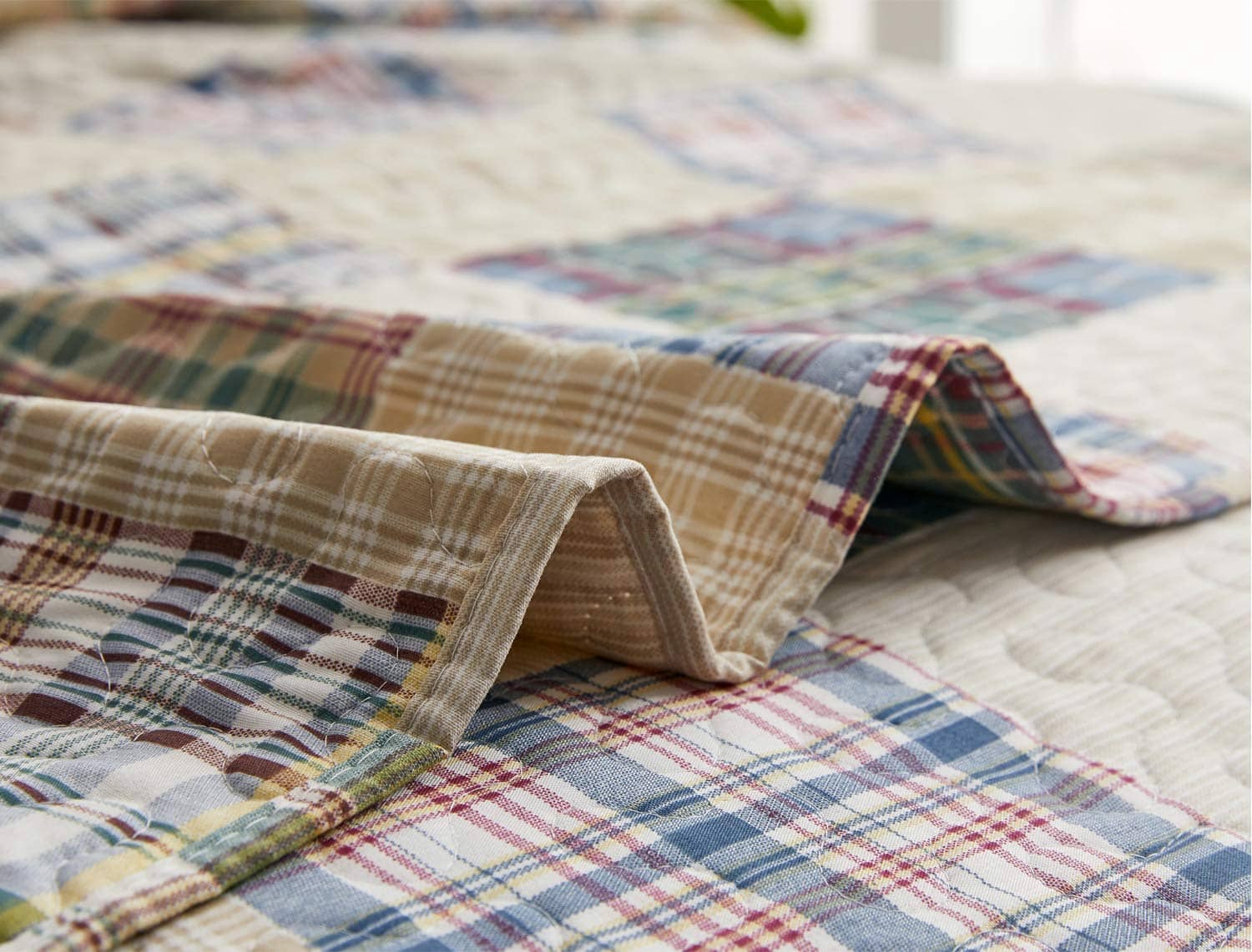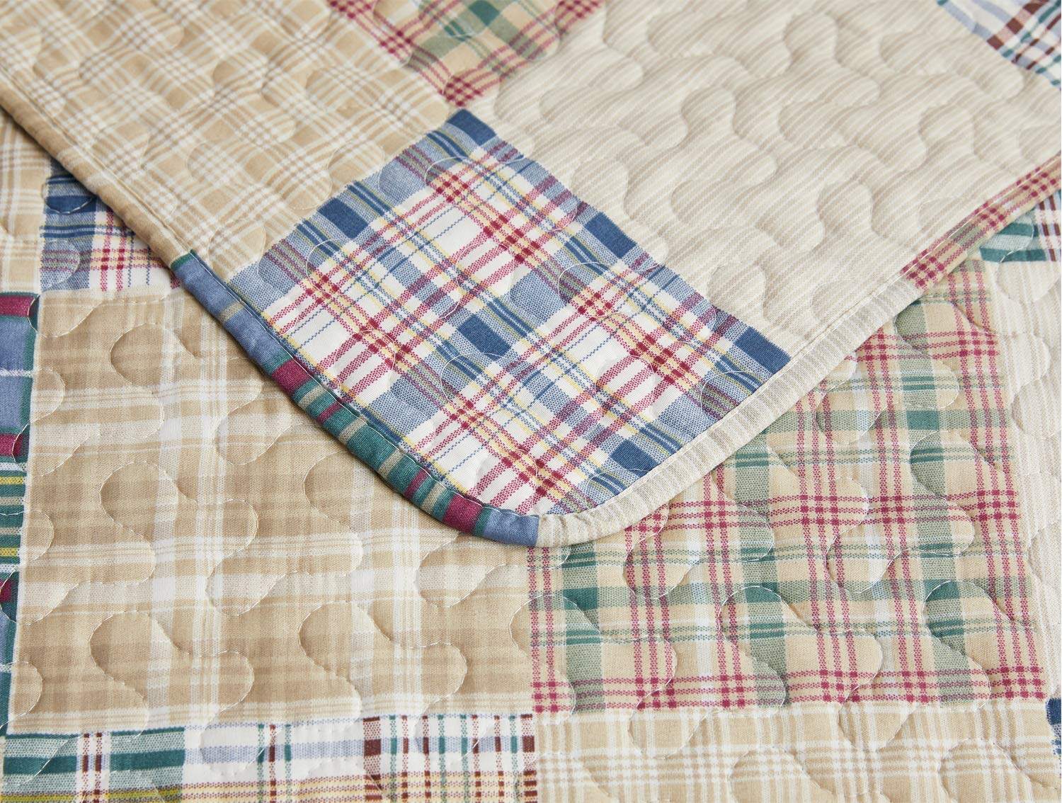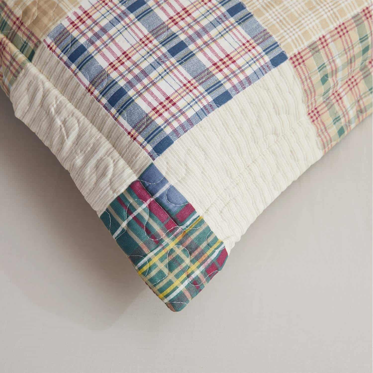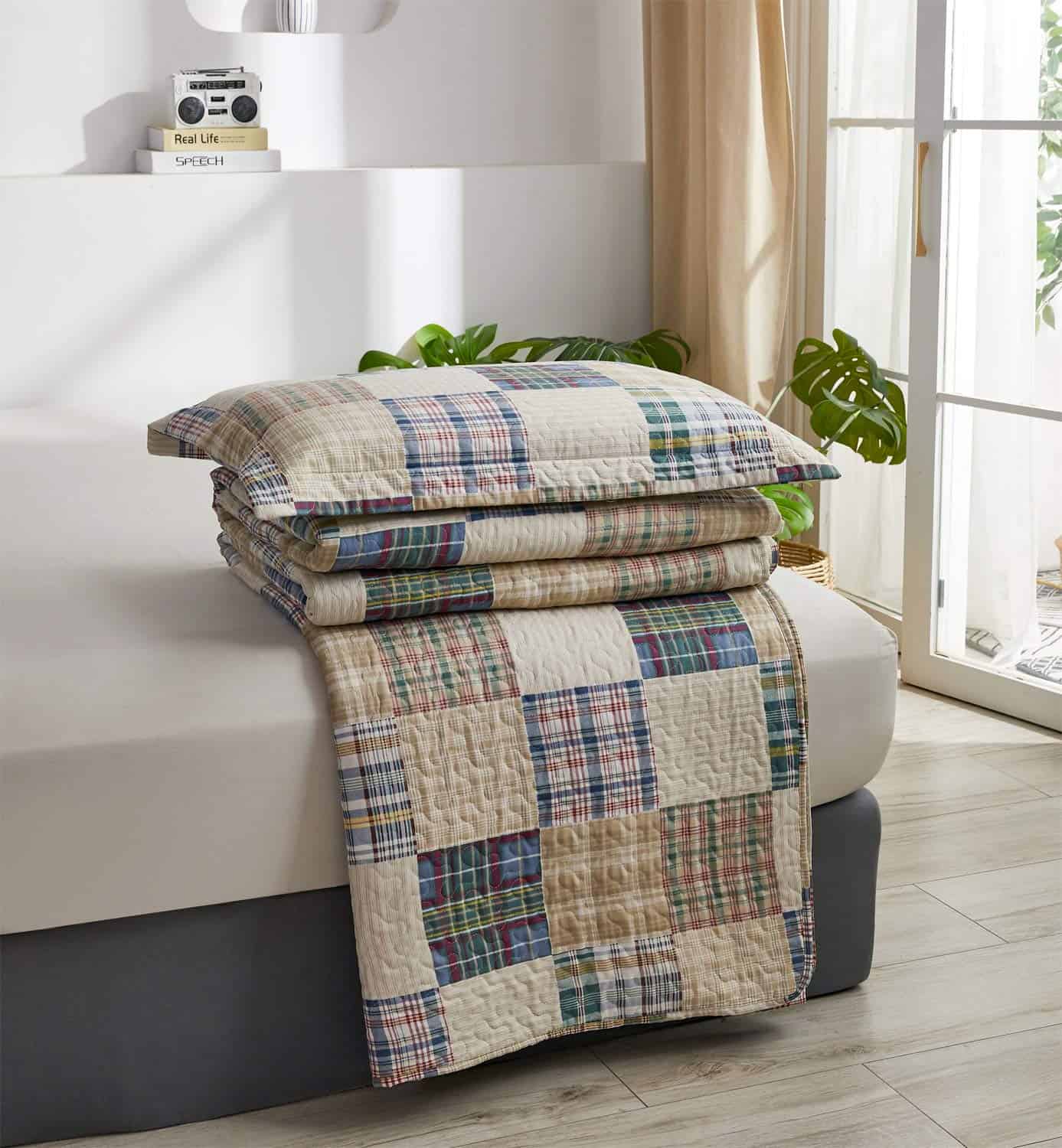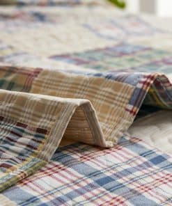 Juego de colcha a cuadros beige Hailea tamaño individual de patchwork de colcha de cama ligera y reversible con funda de almohada suave.