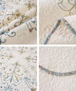 Juego de Colcha Acolchada Boho Floral Bordada 3 Piezas