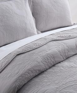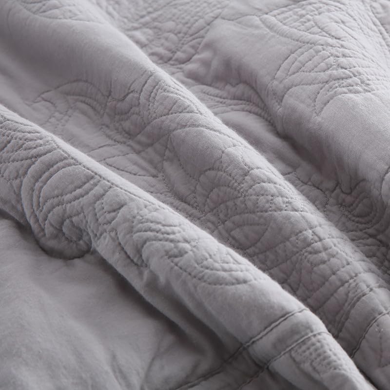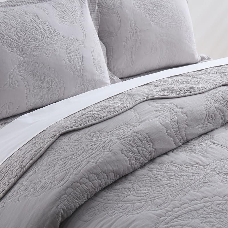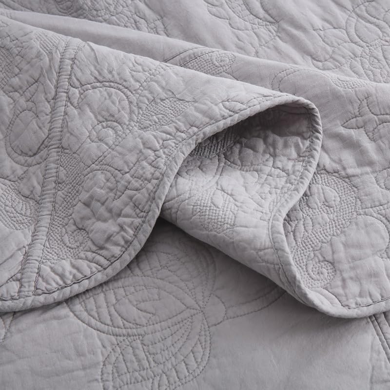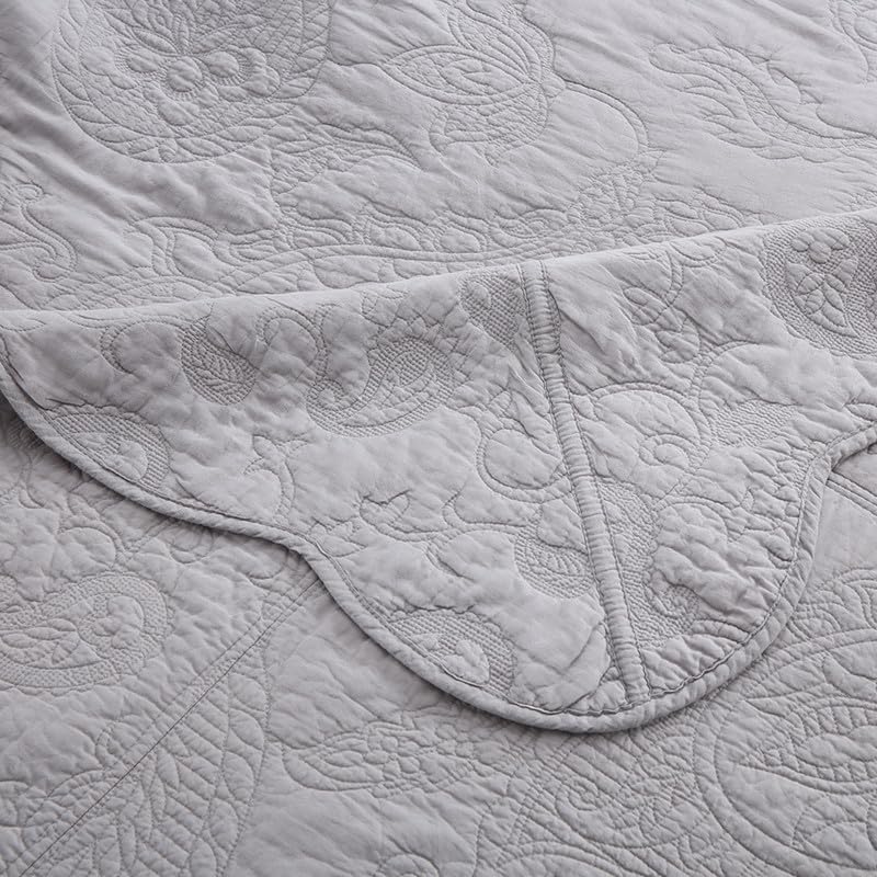 La colcha de alta calidad es ideal para uso durante todo el año, como cubrecamas para mantenerte calentito en invierno y como colcha en verano. Idea de regalo para hombres y mujeres, niños y adolescentes de todas las edades. Esta colcha de patchwork real, con un proceso de patchwork especial con una intensa costura que hace que esta colcha de patchwork sea más duradera y cómoda, el diferente patrón floral de paisley sólido gris se combina perfectamente entre sí, proporcionándote conjuntos de ropa de cama más elegantes y encantadores. El elegante cubrecamas de paisley floral gris: Patrón vintage de paisley floral con una amplia gama de colores sólidos para elegir, combina con cualquier estética de decoración del hogar, adecuado para dormitorios, habitaciones de niños, habitaciones de invitados, etc., y también se puede utilizar al aire libre, como para viajes y camping. Este juego de 3 piezas incluye 1 colcha tamaño queen (90 x 98) y 2 fundas de almohada a juego (20 x 27). Puedes elegir un tamaño más grande si quieres una colcha que llegue hasta el suelo. Fácil cuidado: Lavar a máquina en frío por separado. Secar a baja temperatura. No usar lejía. La doble costura de la colcha acolchada mantiene el relleno en su lugar incluso después de lavarla.