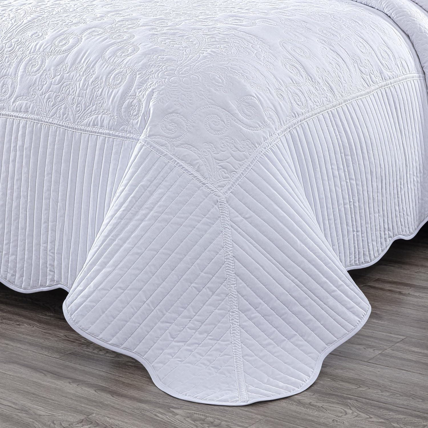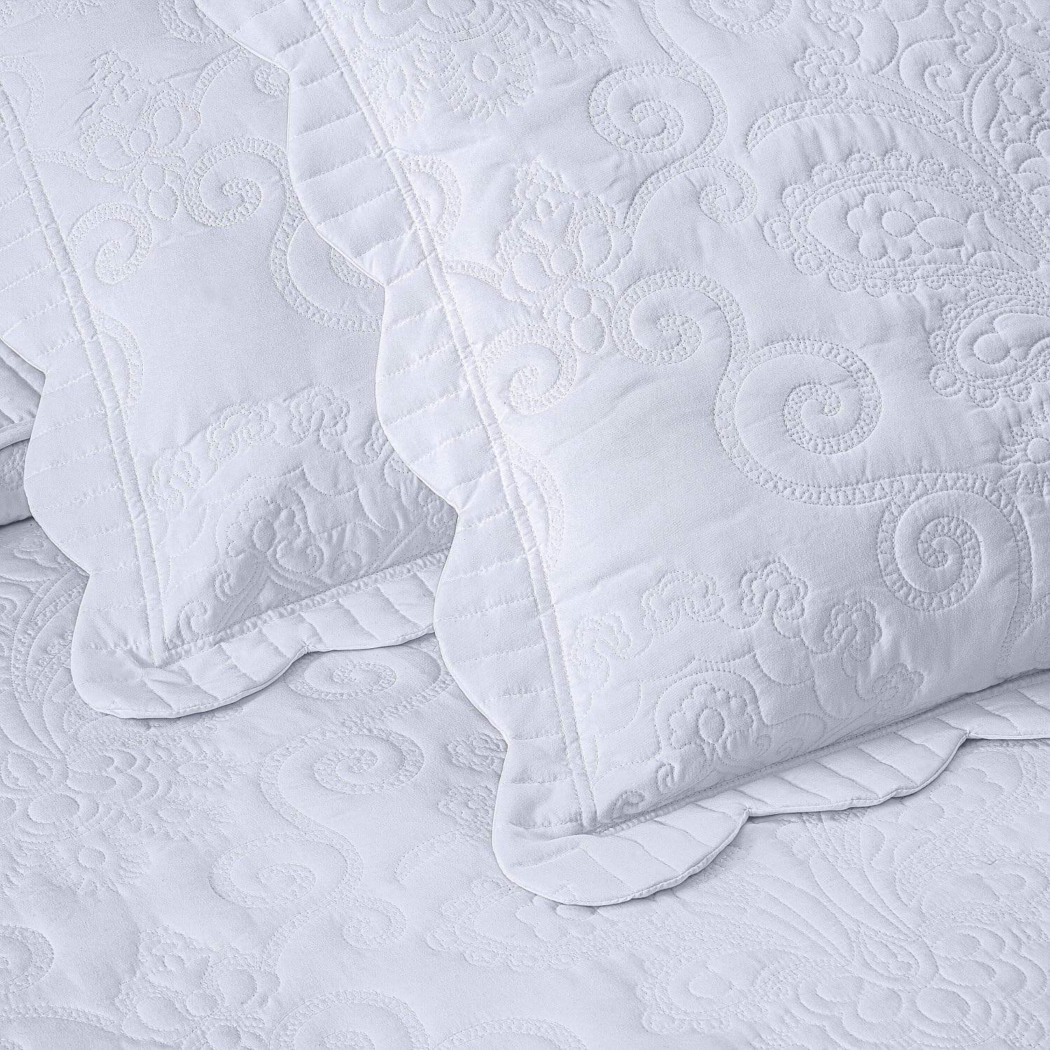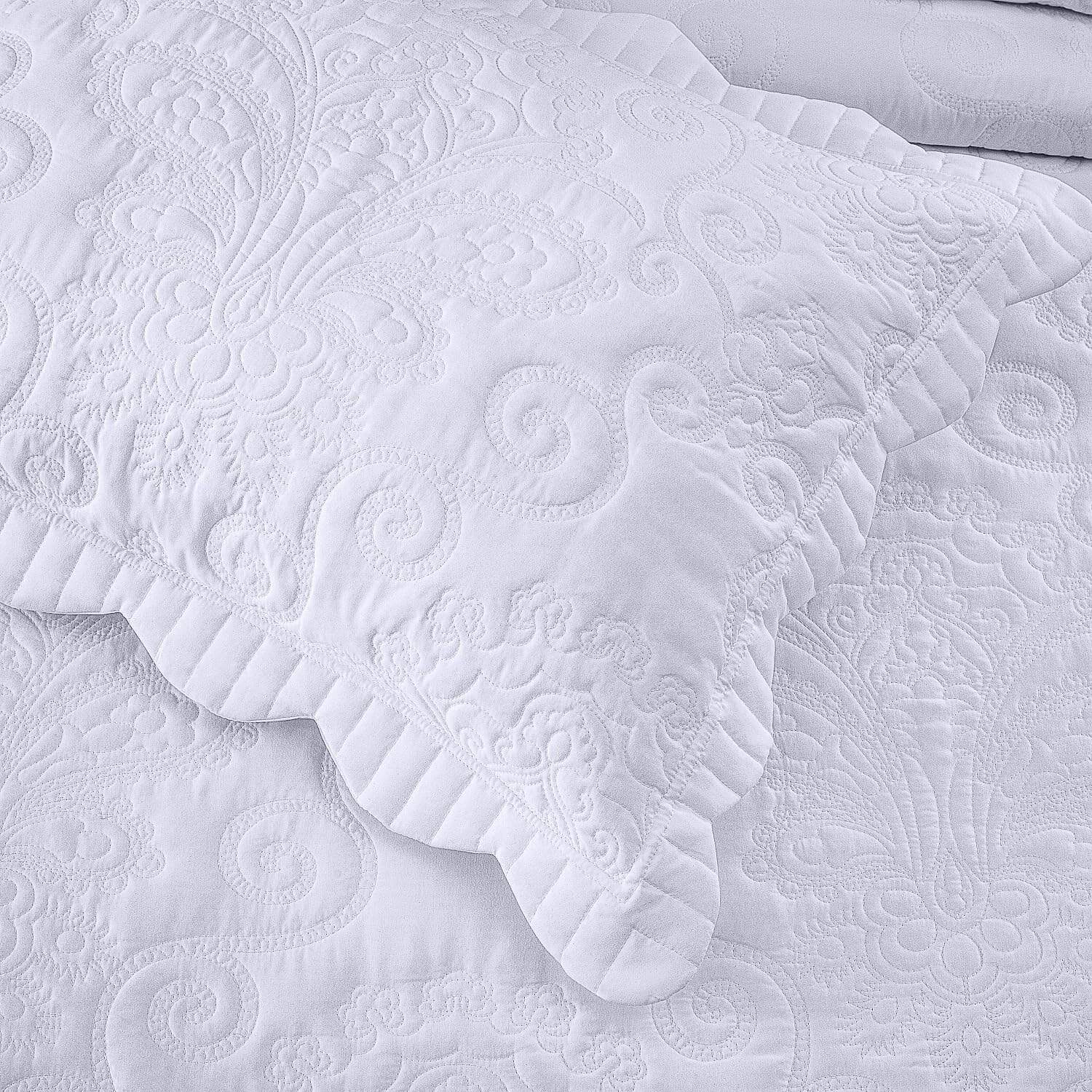 Transforma tu dormitorio de una manera sofisticada y lujosa con este cálido juego de colcha extragrande. Un patrón de costura único y atractivo en un diseño clásico con un toque moderno. Los bordes están acolchados con un borde festoneado para un toque final hermoso. Brindando comfort diario con un tacto súper suave y suave. Ligero, lo que lo convierte en una excelente elección para uso durante todo el año.