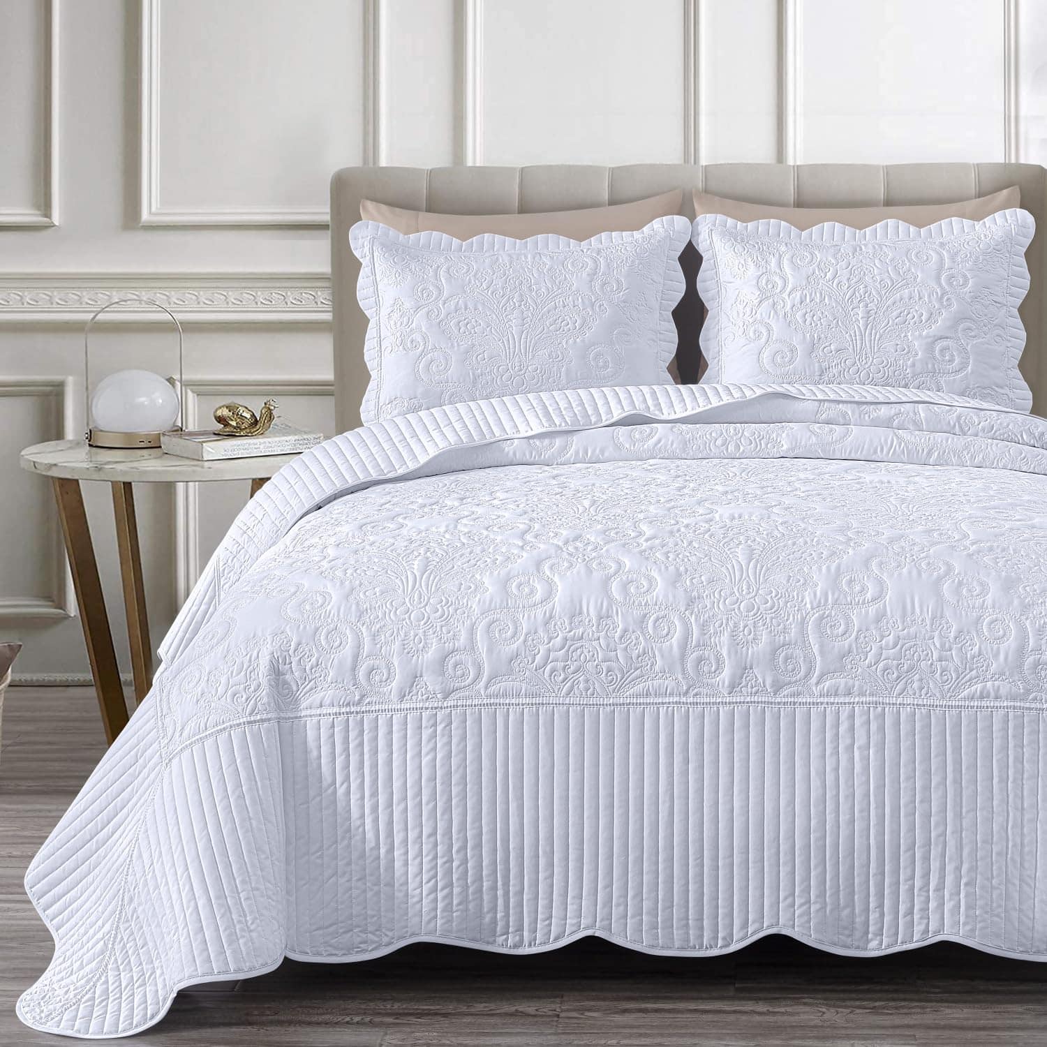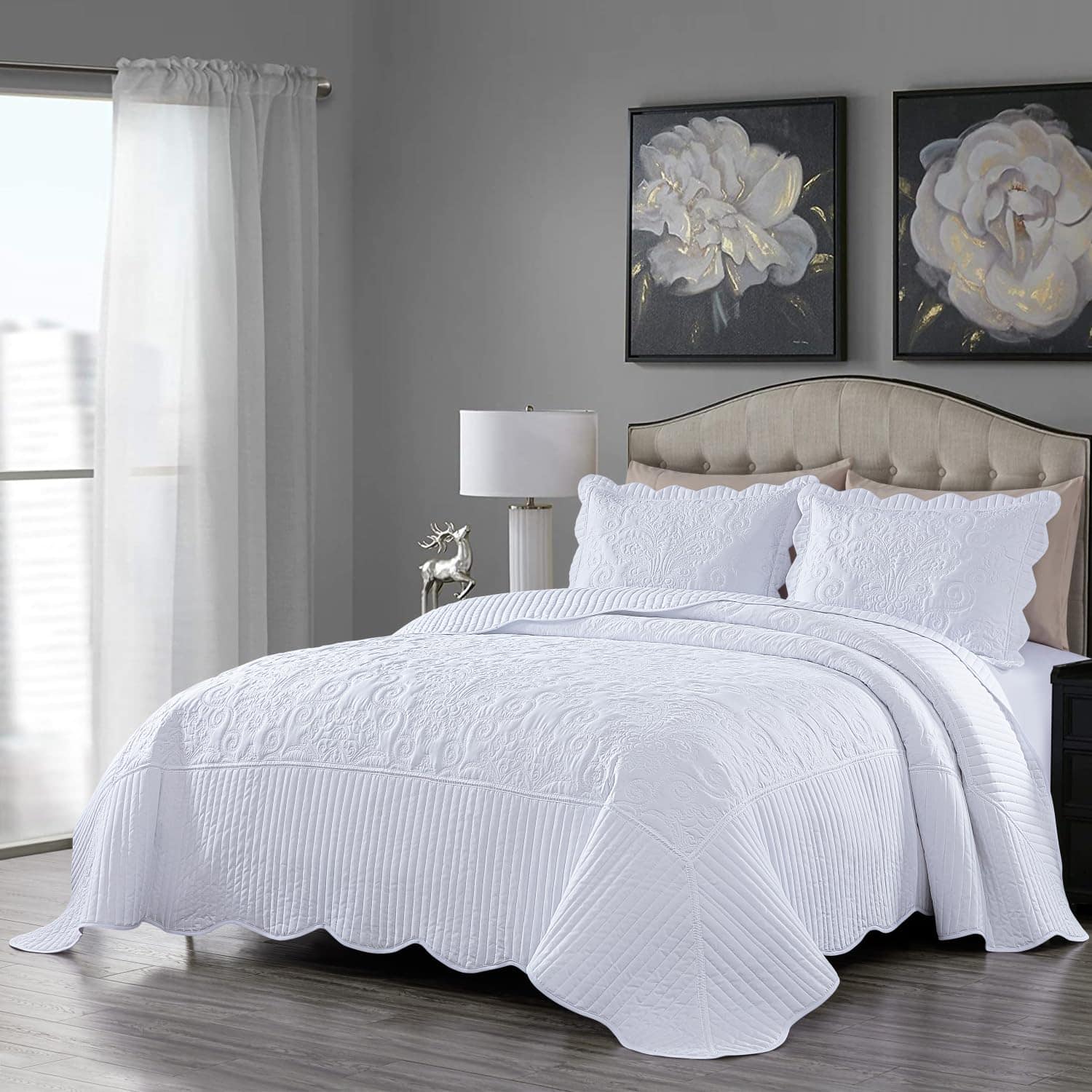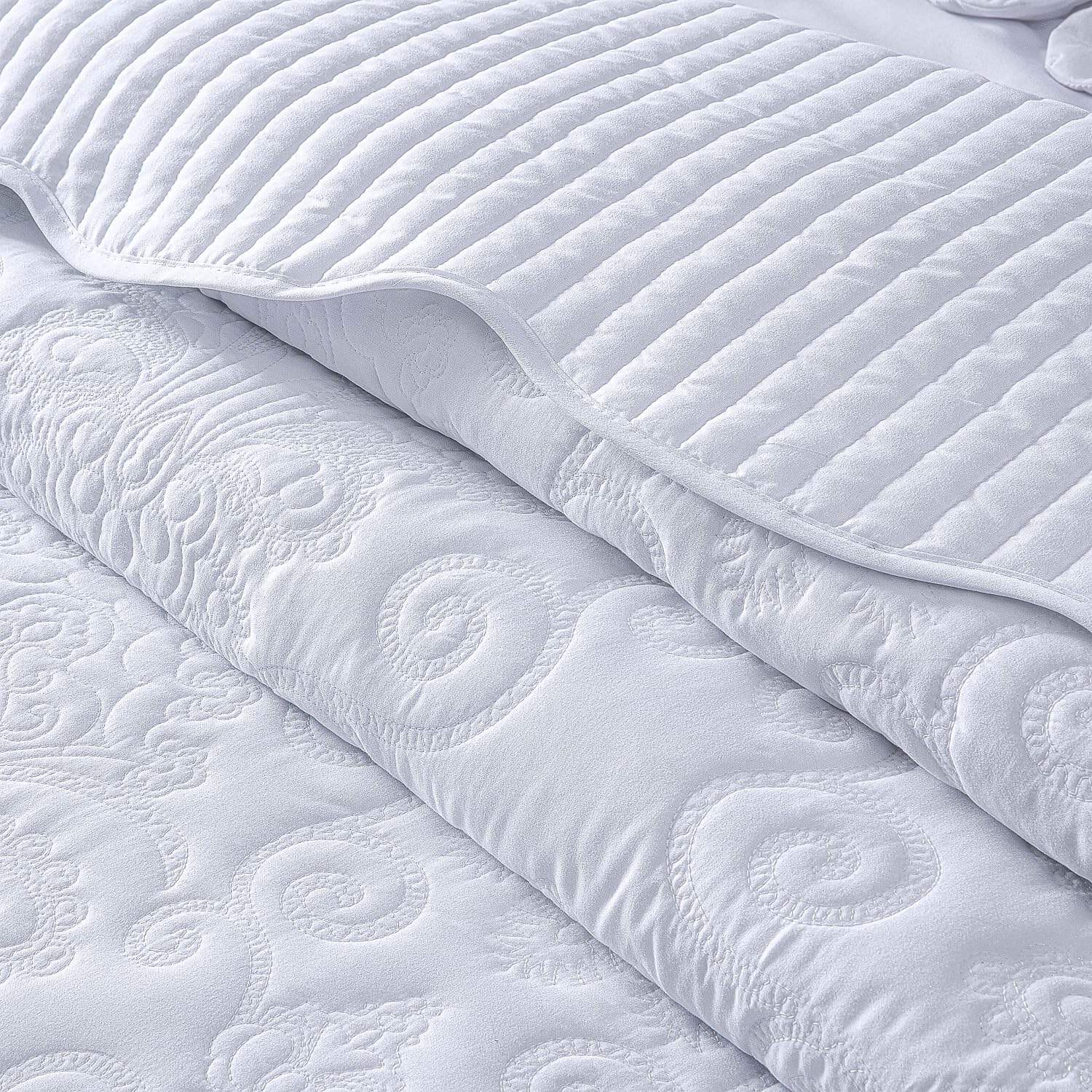 Transforma tu dormitorio de una manera sofisticada y lujosa con este cálido juego de colcha extragrande. Un patrón de costura único y atractivo en un diseño clásico con un toque moderno. Los bordes están acolchados con un borde festoneado para un toque final hermoso. Brindando comfort diario con un tacto súper suave y suave. Ligero, lo que lo convierte en una excelente elección para uso durante todo el año.