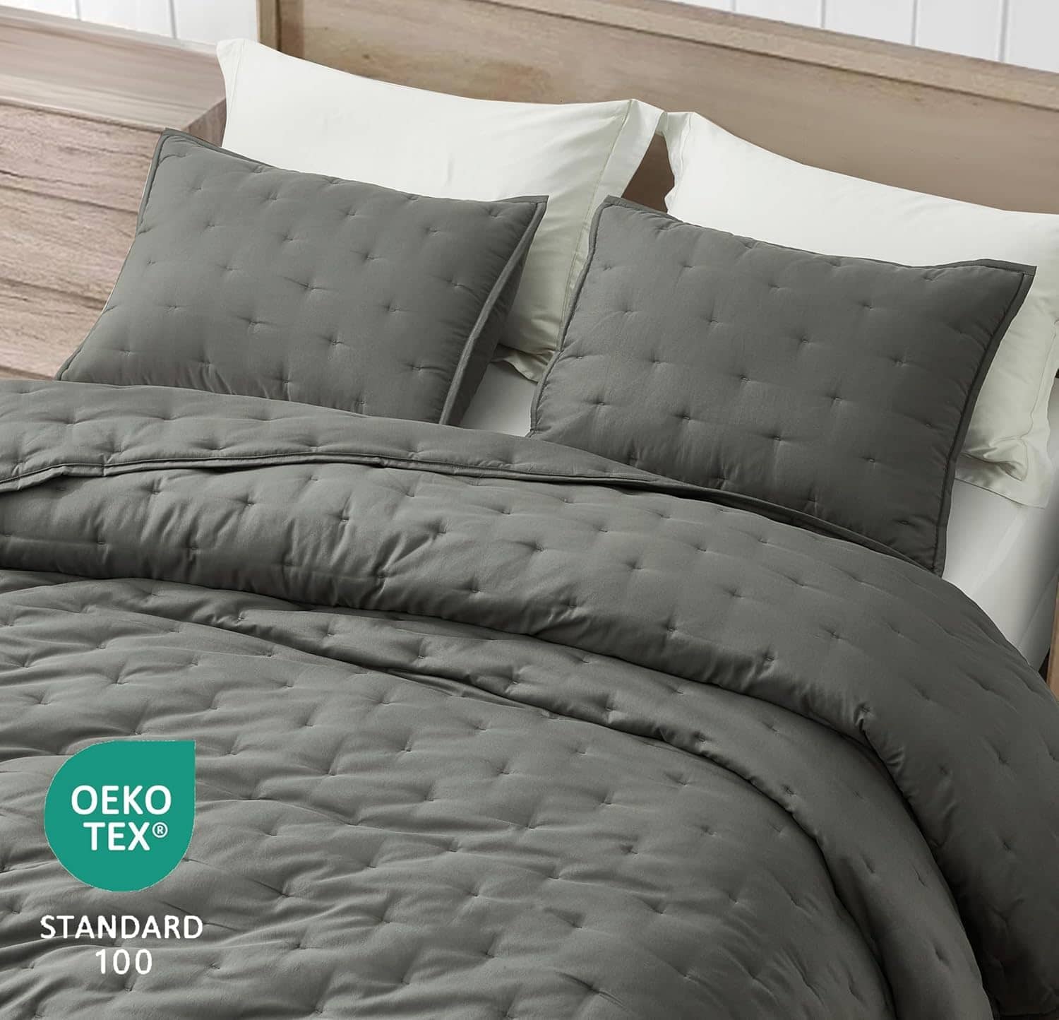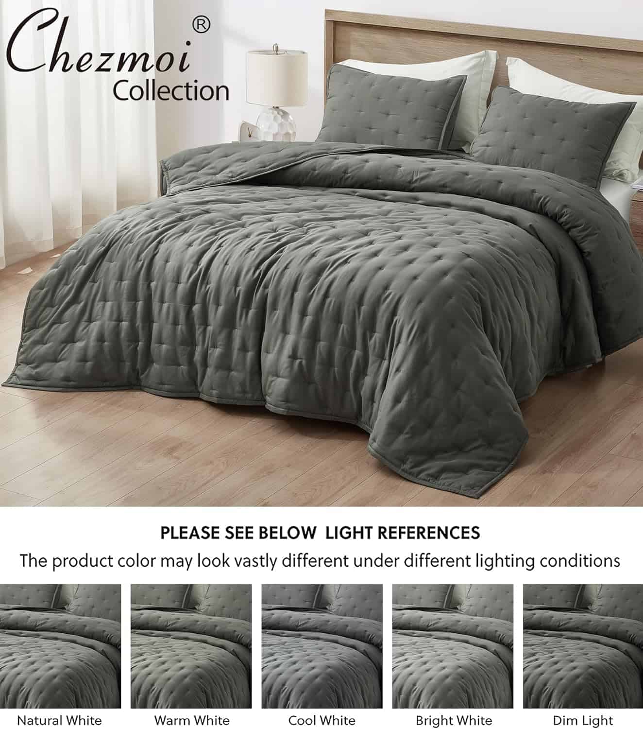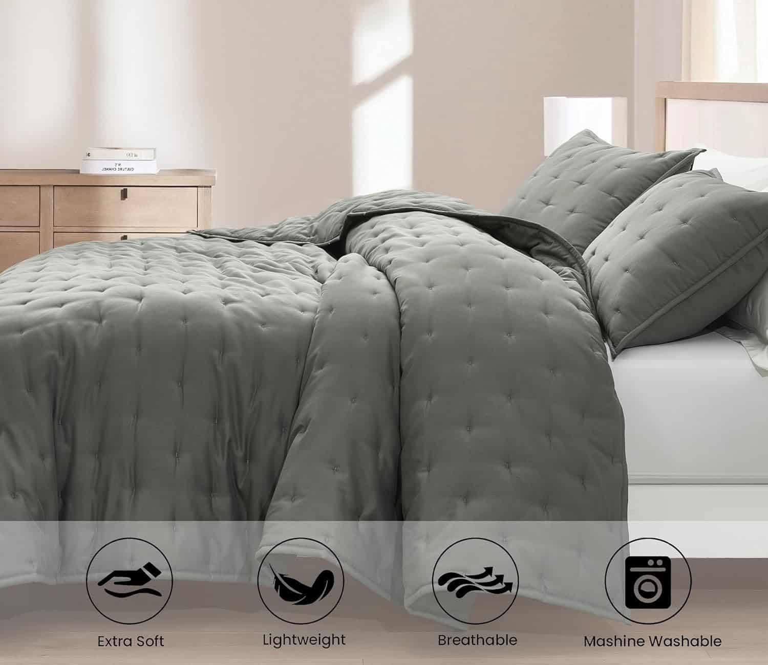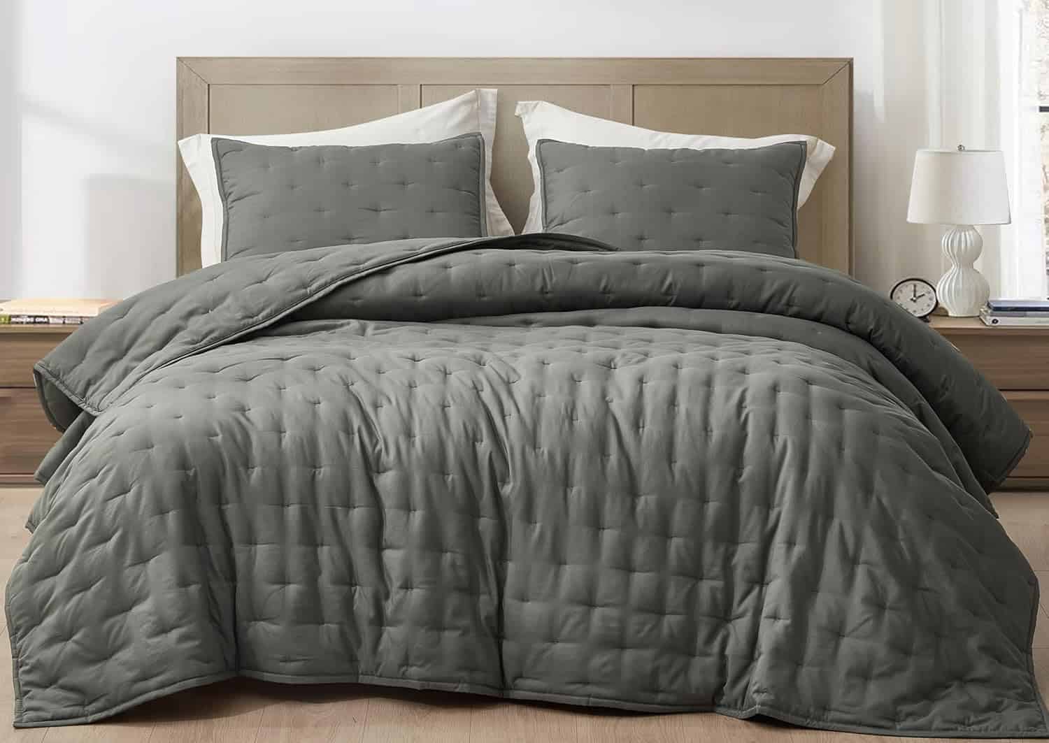 Juego de Colcha Chezmoi Collection Glen de -Gris Oscuro