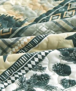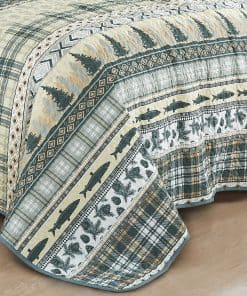 Dale a tu dormitorio una merecida remodelación con esta colección inspirada en cabañas del suroeste. Diseñada con inspiración de vida silvestre de ciervos contemplando el horizonte con motivos de pinos y peces incorporados en patrones de cuadros complementarios. Un toque de elementos rústicos para dar una vibra de cabaña hogareña evoca una sensación de aventura y agrega una declaración audaz a tu dormitorio. Esta decoración cautivadora seguramente te hará disfrutar de una experiencia cálida y cómoda en la cama, seguramente dará deleite a toda la familia. El patrón está impreso en una ligera tela de poliéster de microfibra, lo que hace que esta colcha sea resistente a la decoloración y a las arrugas. Una colcha ligera, adecuada como una capa decorativa durante los climas más fríos o por sí sola durante las estaciones más cálidas. Es una adición versátil a tu dormitorio que se adapta a tus necesidades. Transforma tu dormitorio en un acogedor refugio de relajación y estilo con este elegante juego de colcha inspirado en cabañas impresas.