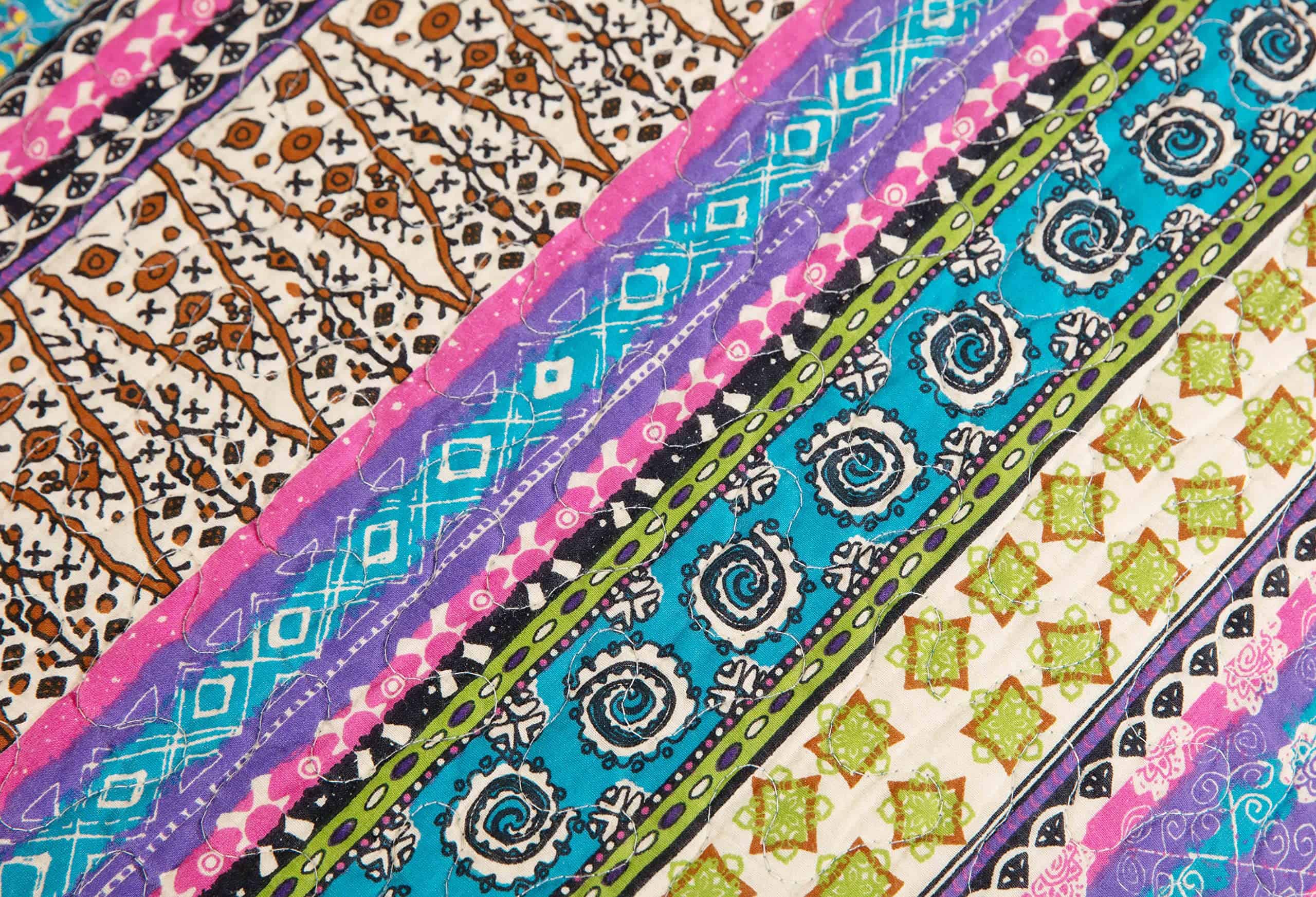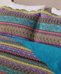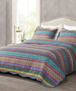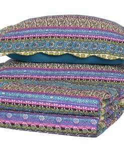 El juego de colcha Chezmoi Collection Odette de 3 piezas es una forma perfecta de darle a tu dormitorio un toque bohemio chic. Este juego incluye una colcha tamaño King y dos fundas de almohada con un diseño floral único y vibrante en patrones a rayas. La colcha está cuidadosamente cosida con precisión en un estilo de costura tipo vermicelli y bordes festoneados para crear una obra maestra visualmente impresionante que transformará tu dormitorio en un oasis bohemio. Hecho de 100% algodón con un proceso de lavado enzimático para una suavidad incomparable, esta colcha es versátil y ligera para su uso durante todo el año. Con resistencia a las arrugas y la contracción, es fácil de cuidar: puedes lavarla a máquina en ciclo suave con agua fría y secarla a baja temperatura o al sol. Llena tu dormitorio de energía libre con el juego de colcha Odette de Chezmoi Collection.