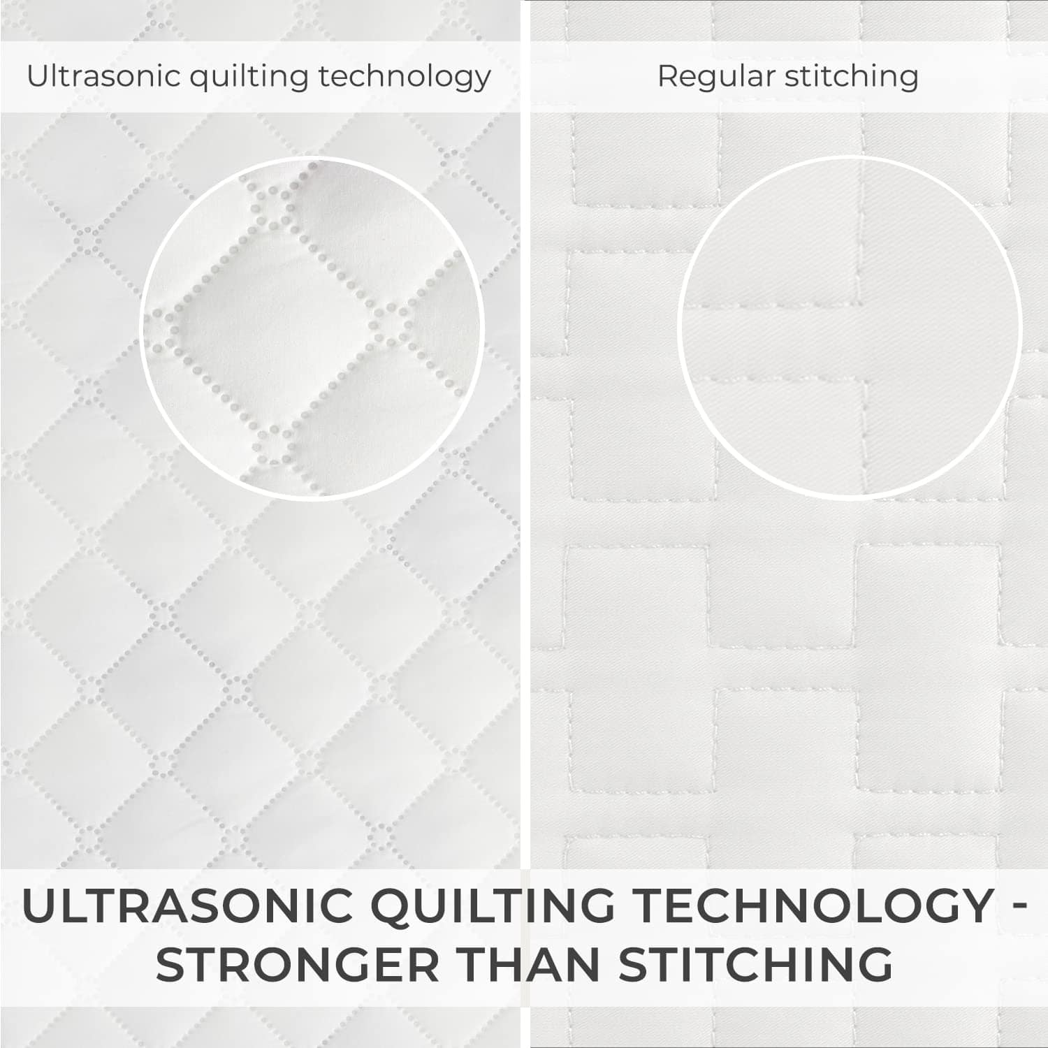 1. Tecnología de acolchado ultrasónico – Sin costuras y duradero, nuestra colcha ultra suave no se deshilacha, incluso con años de uso. El microfibra de doble cepillado ofrece calor adicional sin peso adicional. Mejora tu dormitorio con esta colcha para todas las estaciones.
