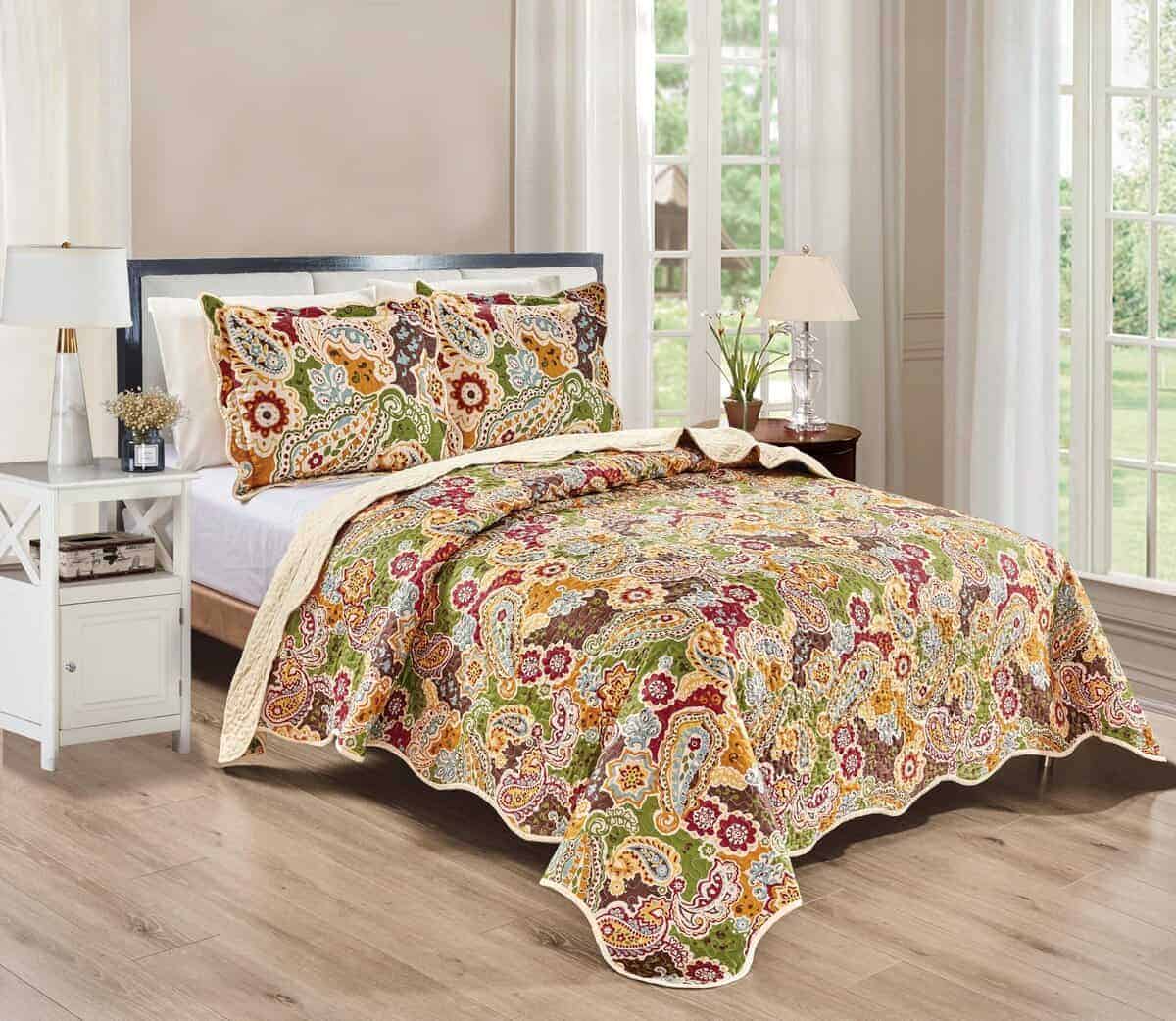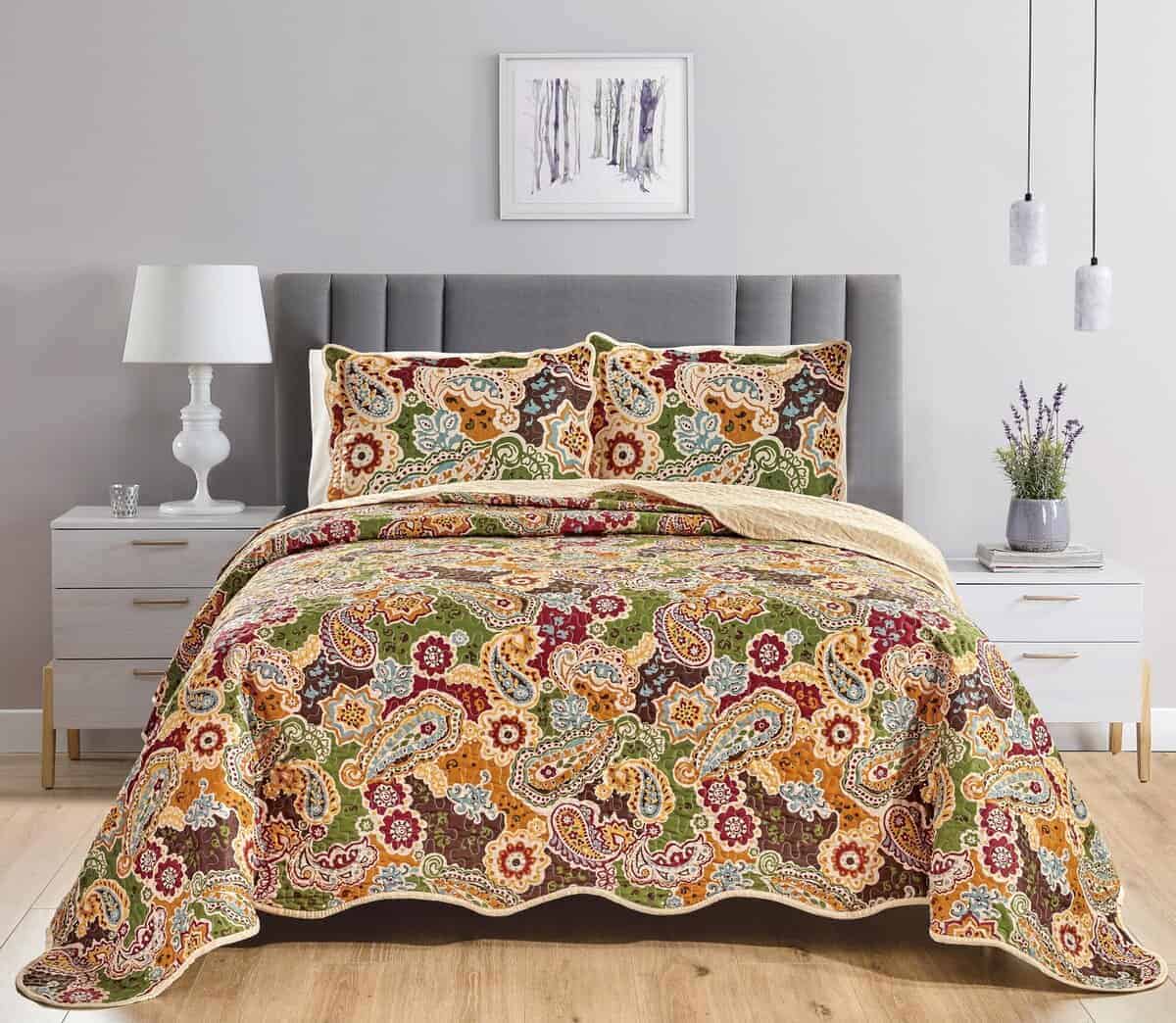 Realza la decoración de tu dormitorio con esta lujosa colcha sobredimensionada en diseño de Paisley de color Rojo Marrón Verde Salvia, perfecta para aquellos que buscan mejorar su colección de ropa de cama con estilo y comodidad. Hecho de primera calidad, microfibra ultra suave, esta colcha ligera pero duradera es ideal para uso en todas las estaciones, brindando el equilibrio adecuado de calidez y transpirabilidad para mantenerte fresco en verano y acogedor en invierno. Estos diseños sobredimensionados ofrecen una amplia cobertura y están disponibles en camas de tamaño Twin, Full Queen, King y California King, ofreciendo un aspecto lujoso, elegante y a medida que complementa perfectamente cualquier estilo, desde moderno, rústico, vintage y de campo hasta costero, minimalista y clásico. Perfecto para una variedad de espacios que incluyen dormitorios principales, habitaciones de invitados, dormitorios de niños y alquileres vacacionales, este versátil cubrecama se puede usar como colcha, manta, edredón alternativo o cubrecama decorativo para adaptarse a tus necesidades. Está diseñado para conveniencia y durabilidad, siendo lavable a máquina, resistente a la decoloración, sin arrugas y de secado rápido, lo que lo hace ideal para hogares ocupados, hogares amigables para mascotas y familias. Esta colcha de alta calidad y multiusos agrega un toque suave, acogedor y acogedor a cualquier habitación, haciendo que sea una excelente elección para los entusiastas de la ropa de cama de lujo o cualquier persona que busque ropa de cama suave, cómoda y hermosa. Perfecto como regalo de inauguración, regalo de bodas, regalo de cumpleaños o regalo de vacaciones para amigos y familiares, este elegante y sofisticado juego de colchas combina elegancia, practicidad y diseño atemporal, asegurando que permanezca como una parte querida de tu hogar durante años