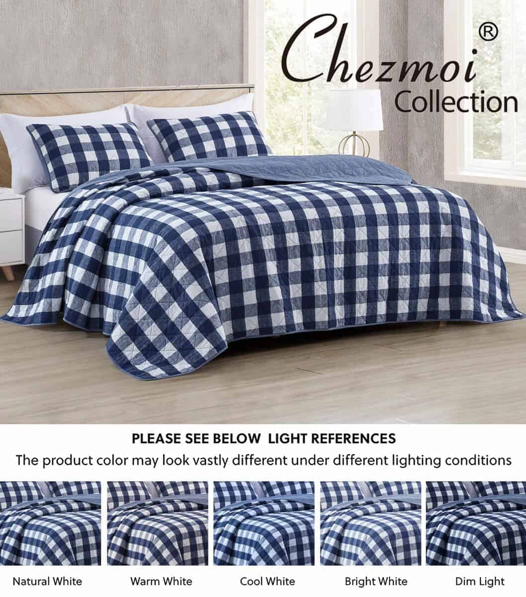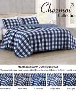 Juego de Colcha de 3 Piezas Chezmoi Collection Azul Blanco