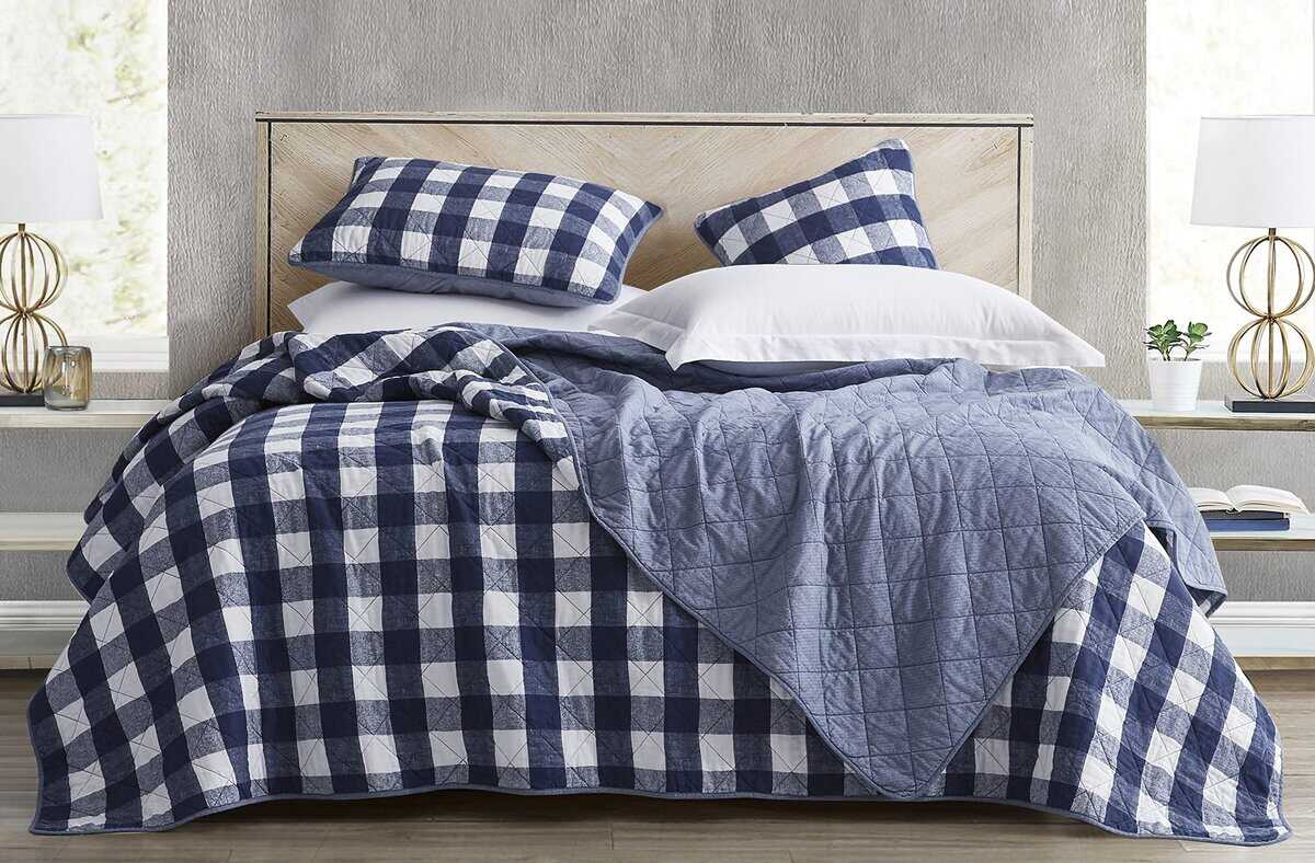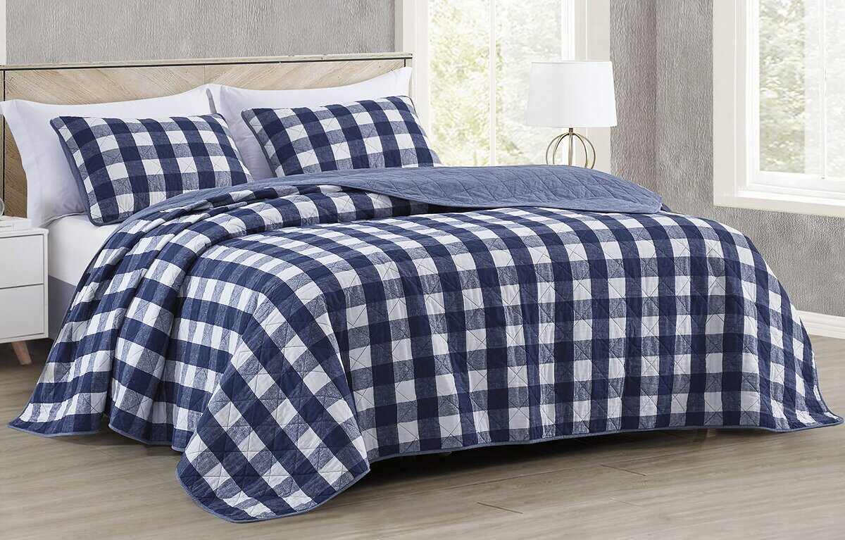 Un juego de colcha clásico de patrón a cuadros de buffalo check atemporal sirve como un hermoso punto focal en tu habitación o habitación de invitados o una bonita pieza de capas para completar la decoración de tu habitación. Su ambiente rústico exhibe una vibración calmante y tranquila para brindar una experiencia de sueño más cómoda. Hecho con una opción reversible de una impresión sólida en el reverso. Ligero pero sin escasez de calor, proporcionando confort transpirable para uso durante todo el año, la colcha está hecha de 100% algodón y lavado a la piedra para una sensación súper suave.