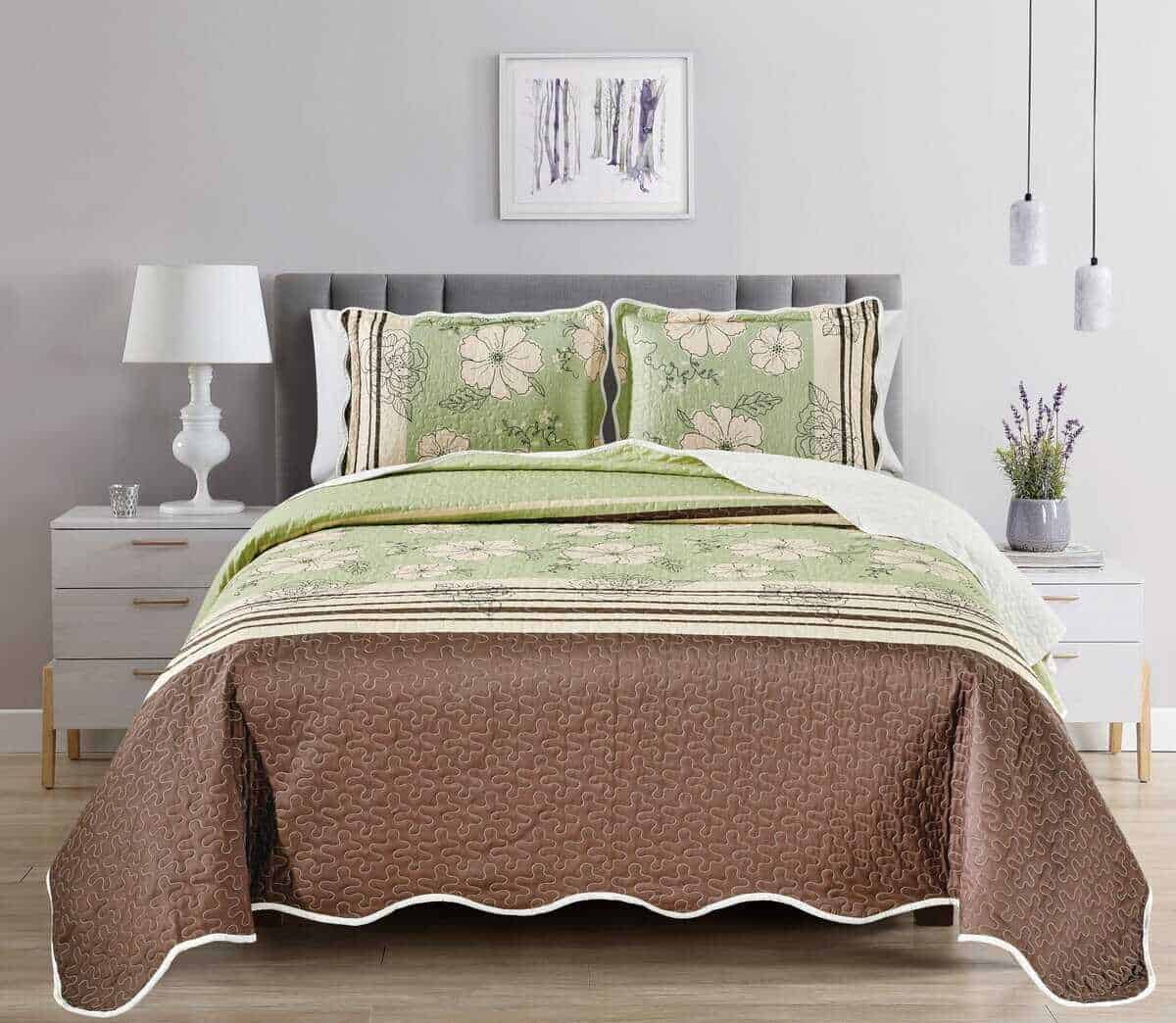 Enhance your bedroom decor with this luxurious oversized quilt in Sage Green Brown, Floral design, perfect for anyone looking to upgrade their bedding collection with both style and comfort. Made from premium, ultra-soft, microfiber, this lightweight yet durable quilt is ideal for all-season use, providing the right balance of warmth and breathability to keep you cool in summer and cozy in winter. These oversized designs give generous coverage and is available in Twin, Full Queen, King, and California King size beds, offering a plush, elegant, and tailored look that beautifully complements any style, from modern, farmhouse, boho, rustic, vintage, and cottage to coastal, minimalist, and classic. Perfect for a variety of spaces including master bedrooms, guest rooms, dorms, kids’ rooms, and vacation rentals this versatile bedspread can be used as a coverlet, blanket, comforter, duvet alternative, or decorative throw to suit your needs. It�s designed for convenience and durability, being machine washable, fade-resistant, wrinkle-free, and quick-drying, making it ideal for busy households, pet-friendly homes, and families. This high-quality, all-purpose quilt adds a soft, cozy, and inviting touch to any room, making it a great choice for luxury bedding enthusiasts or anyone in search of soft, comfortable, and beautiful bedding essentials. Perfect as a housewarming gift, wedding gift, birthday gift, or holiday gift for friends and family, this stylish, sophisticated bedspread quilt combines elegance, practicality, and timeless design, ensuring it remains a beloved part of your home for years to come