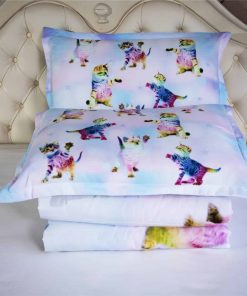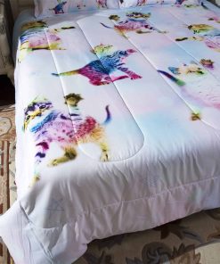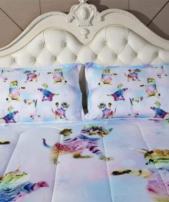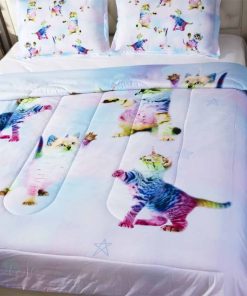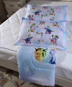 Juego de Colcha de 3 Piezas de Unicornio Arcoíris Gatito