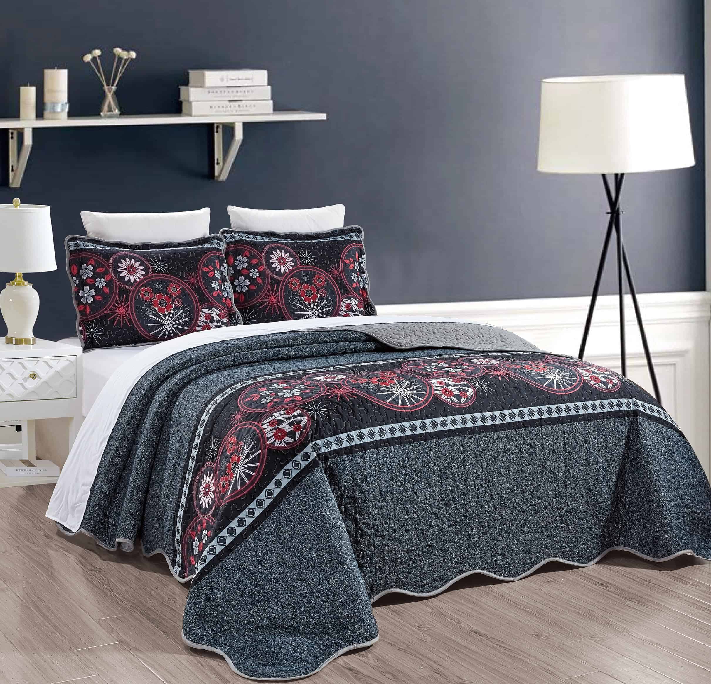 Realza la decoración de tu dormitorio con esta lujosa colcha extragrande en diseño negro rojo gris blanco, floral, perfecta para cualquiera que desee renovar su colección de ropa de cama con estilo y comodidad. Fabricada con microfibra premium y ultra suave, esta colcha ligera pero duradera es ideal para uso todo el año, proporcionando el equilibrio adecuado entre calidez y transpirabilidad para mantenerte fresco en verano y acogedor en invierno. Estos diseños extragrandes ofrecen una generosa cobertura y están disponibles en camas de tamaño Twin, Full queen, king y California king, ofreciendo un aspecto lujoso, elegante y a medida que complementa maravillosamente cualquier estilo, desde moderno, rústico, vintage, hasta costero, minimalista y clásico. Perfecta para una variedad de espacios, como dormitorios principales, habitaciones de invitados, dormitorios de niños y alquileres vacacionales, esta versátil colcha puede ser utilizada como cobertor, manta, edredón alternativo o como un lanzamiento decorativo según tus necesidades. Está diseñada pensando en la conveniencia y la durabilidad, siendo lavable a máquina, resistente a la decoloración, sin arrugas y de secado rápido, haciéndola ideal para hogares ocupados, hogares aptos para mascotas y familias. Esta colcha de alta calidad y de uso versátil añade un toque suave, acogedor e invitador a cualquier habitación, convirtiéndola en una excelente opción para entusiastas de la ropa de cama de lujo o cualquier persona en busca de esenciales de cama suaves, cómodos y hermosos. Perfecta como regalo de inauguración, regalo de boda, regalo de cumpleaños o regalo de vacaciones para amigos y familiares, esta elegante y sofisticada colcha combina elegancia, practicidad y diseño atemporal, asegurando que se convierta en una parte querida de tu hogar durante años por venir