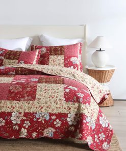 Este juego de colcha está hecho de 100% algodón natural de alta calidad tanto en las fundas como en el relleno. Las fibras naturales de algodón aseguran que te sientas suave y transpirable. Puede utilizarse como colchas, edredones, juegos de cubrecamas, cubre sofás, cobertores de cama, mantas, etc. El patrón retro de patchwork de cuadros rojos combinados con el patrón de rosas res es encantador y vívido, adecuado para todo tipo de decoraciones de habitaciones. El reverso con un hermoso patrón floral de rosas diferentes es reversible de usar. Este juego de colcha ligero tiene una durabilidad mejorada contra el desgaste prolongado, incluidos los arañazos y la caída de mascotas. La costura de doble aguja mantiene la colcha en su lugar, incluso después de lavarla. Los estampados exquisitos no se desvanecerán incluso después de lavarlos. El juego de ropa de cama reversible de tamaño Queen incluye 1 colcha (90×98 pulgadas) y 2 fundas de almohada (20×27 pulgadas). Fácil de cuidar: lavar a máquina en agua fría. Cuidado al lavar por separado y secar a fuego lento. No usar lejía.