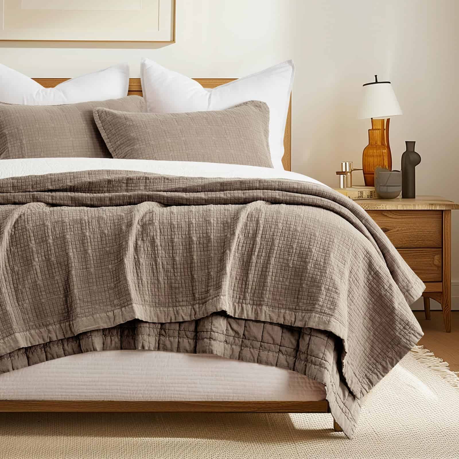 Juego de Colcha de Algodón Lavado a la Piedra Tamaño King,