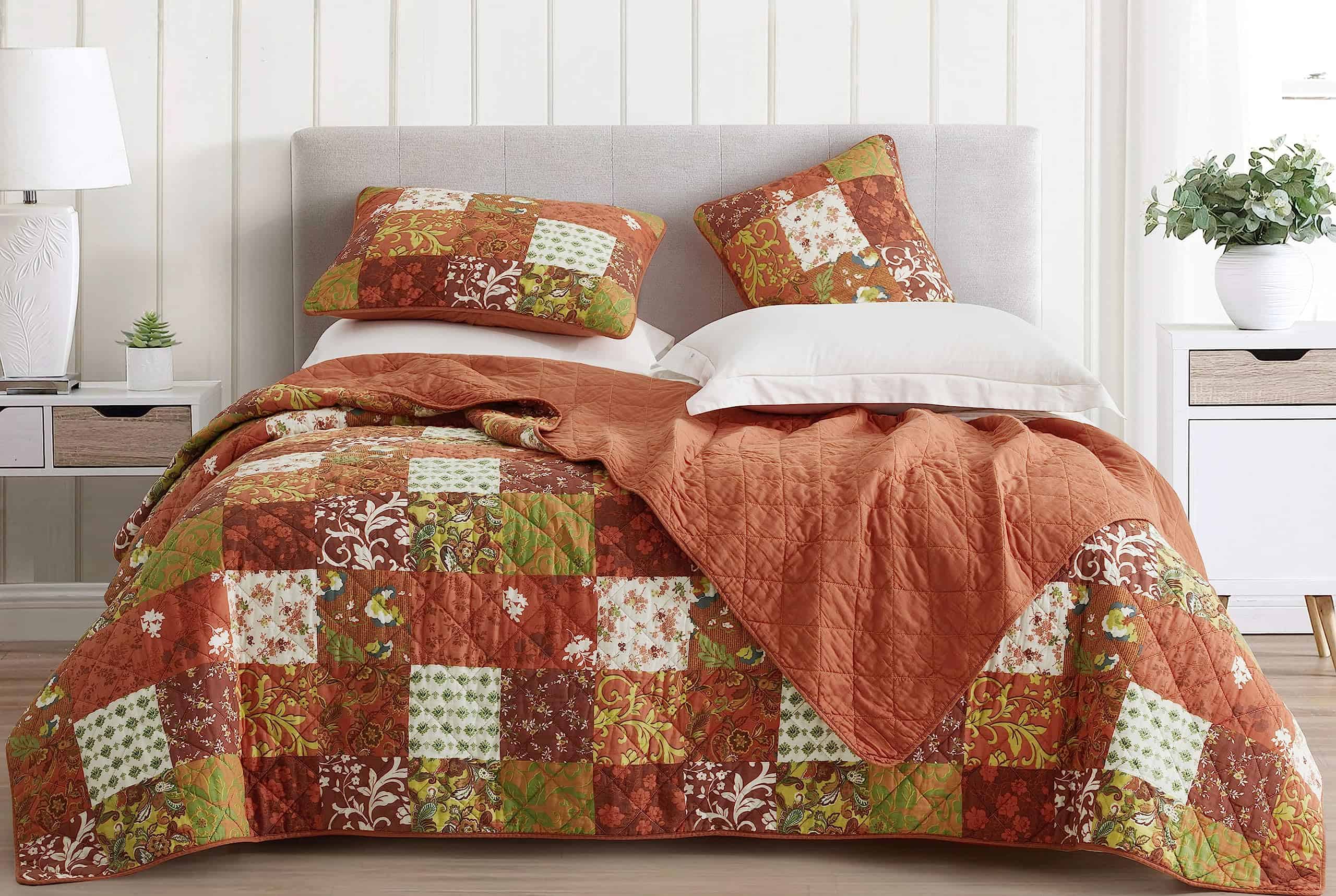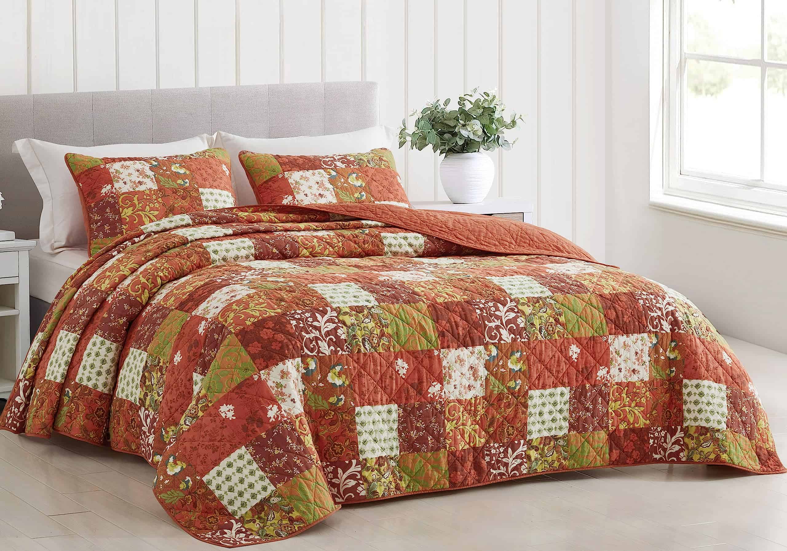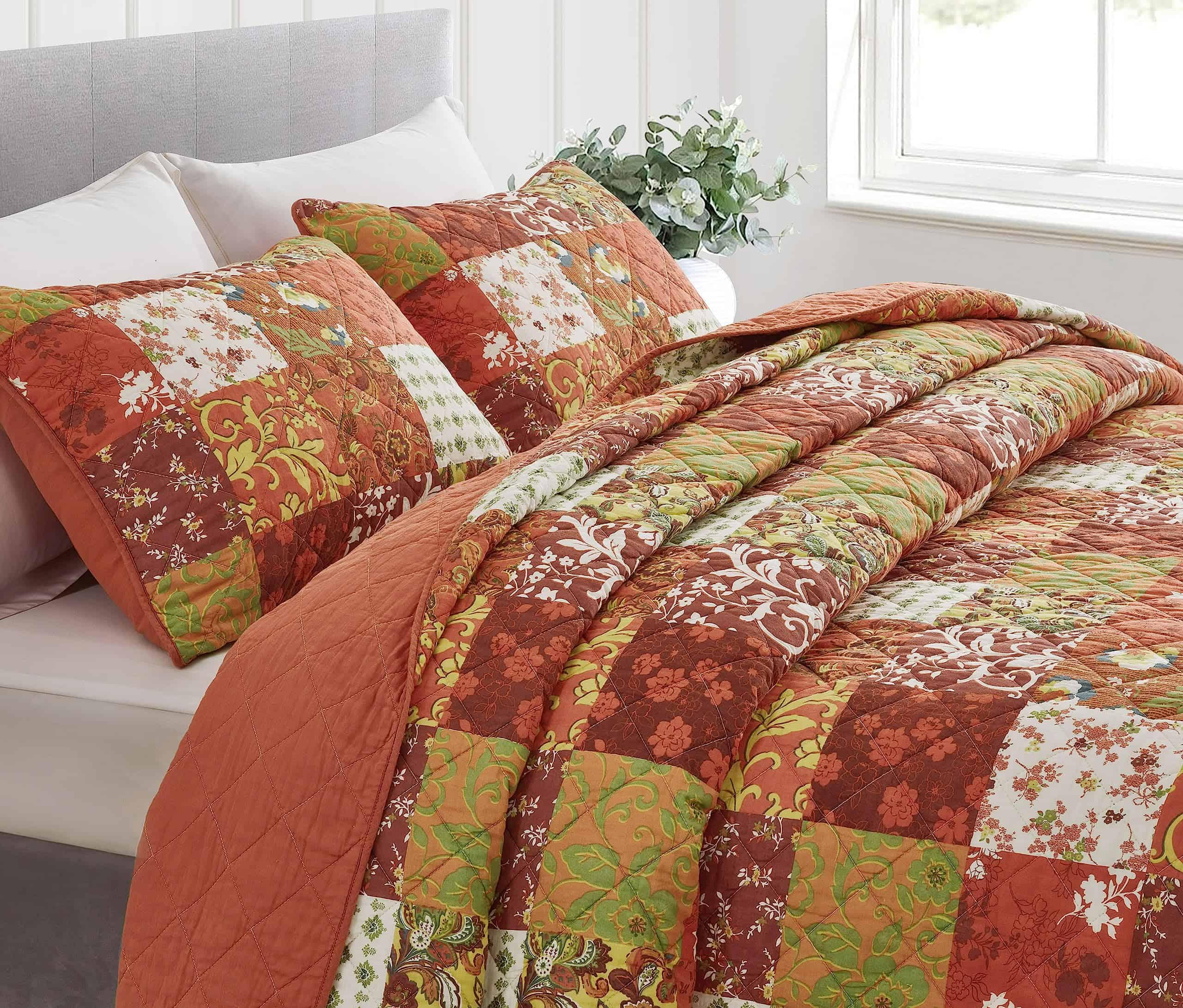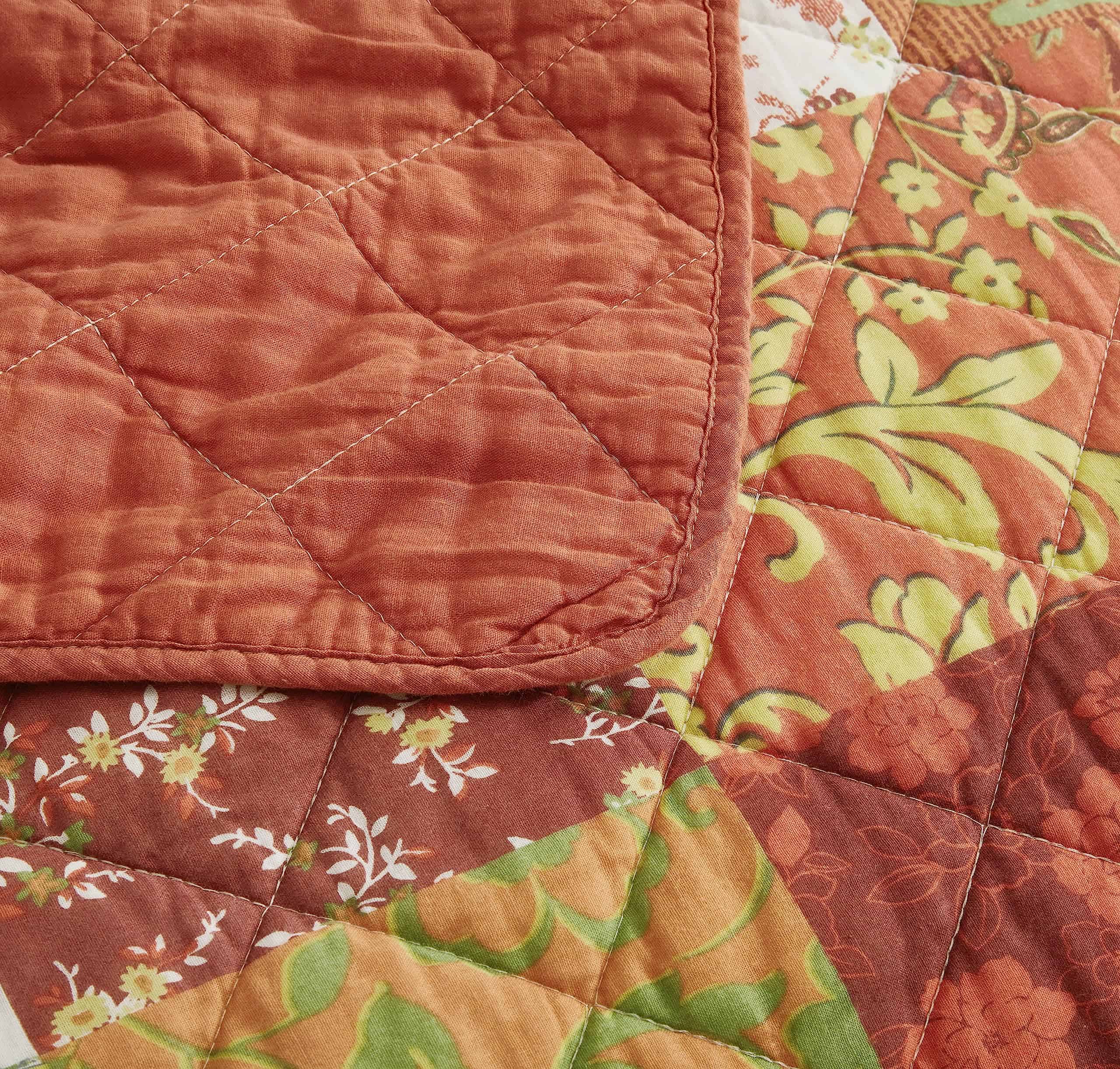 ¡Presentamos nuestro hermoso Juego de Colcha Ligera de Patchwork Floral Bohemio Leilani, la adición perfecta a cualquier dormitorio! Hecho de tela de cobertura 100% algodón y relleno de algodón, esta colcha es suave, cómoda y transpirable, asegurando que tengas una buena noche de sueño. Con un impresionante diseño de patchwork con una variedad de estampados florales coloridos desde vintage hasta tradicionales y modernos, esta colcha añade un toque de encanto bohemio a tu espacio. Acolchado con un patrón de diamantes para añadir dimensión, la construcción ligera la hace perfecta para el clima más cálido, pero también añade una capa decorativa acogedora y calidez en noches más frescas. No solo esta colcha es elegante y cómoda, sino que también ha sido lavada a prenda para relajar las fibras de algodón y producir un ligero aspecto usado, vintage y vivido, a la vez que es duradera y fácil de cuidar con este juego de ropa de cama. Ya sea que estés buscando actualizar la decoración de tu dormitorio o simplemente desees una opción de ropa de cama cómoda y elegante, nuestra Colcha Ligera de Patchwork Floral Bohemia es la elección perfecta.