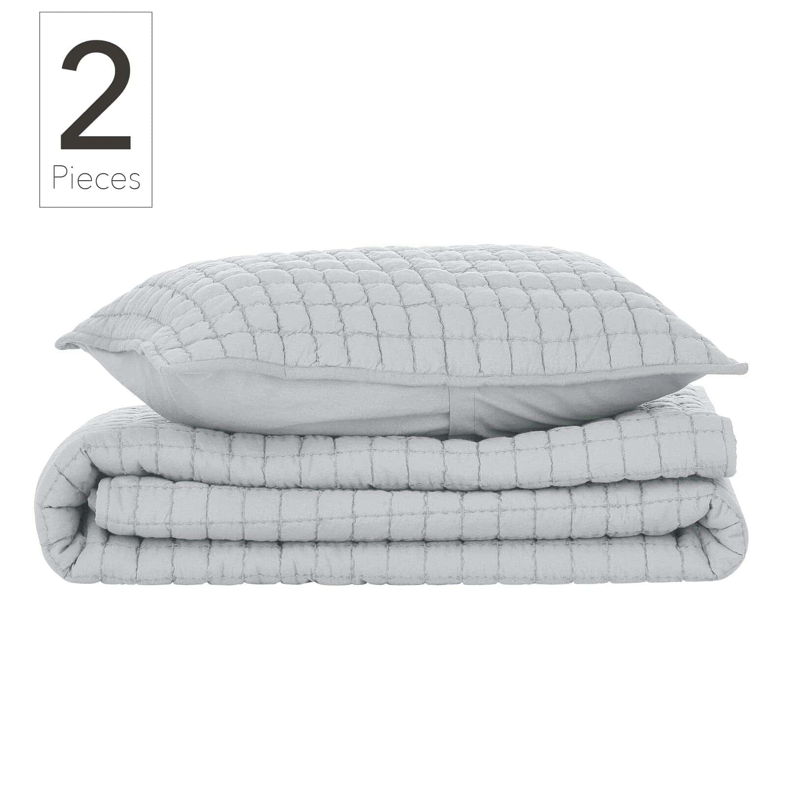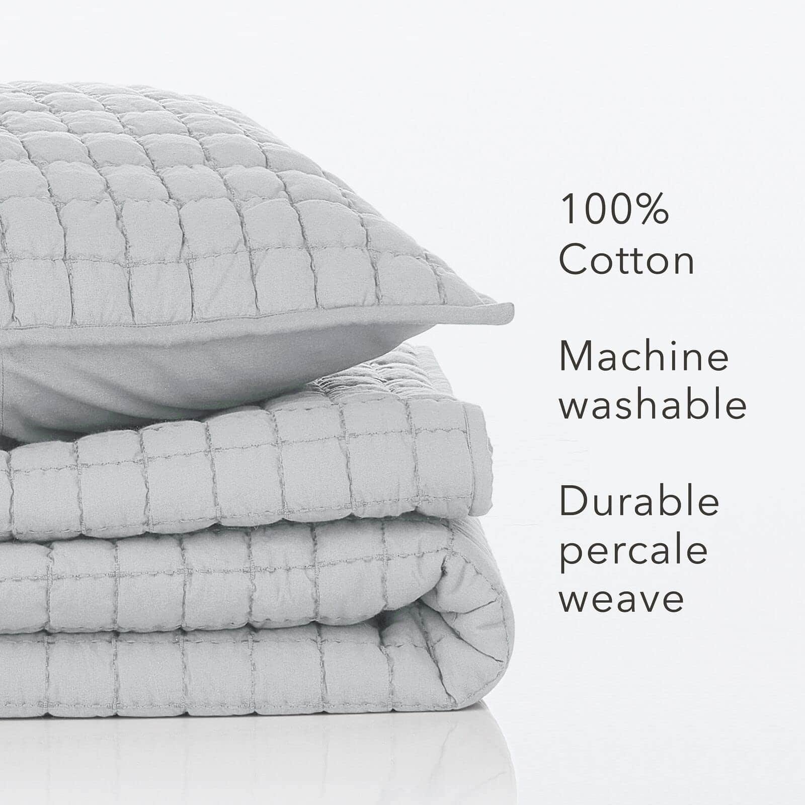 2. DISEÑADO HERMOSAMENTE: El conjunto de 2 incluye 1 colcha y 1 funda de almohada estándar/reina a juego; El algodón increíblemente suave de esta colcha ofrece confort para garantizar una noche de sueño relajante; Fabricado y prelavado, este juego solo se vuelve más suave con el tiempo para una sensación vivida; Los bordes con encuadernación autoajustables y un cierre con solapa en las fundas de almohada crean un aspecto limpio y a medida; Acomode su cama con sábanas, un edredón, mantas y almohadas para garantizar una noche de sueño relajante.