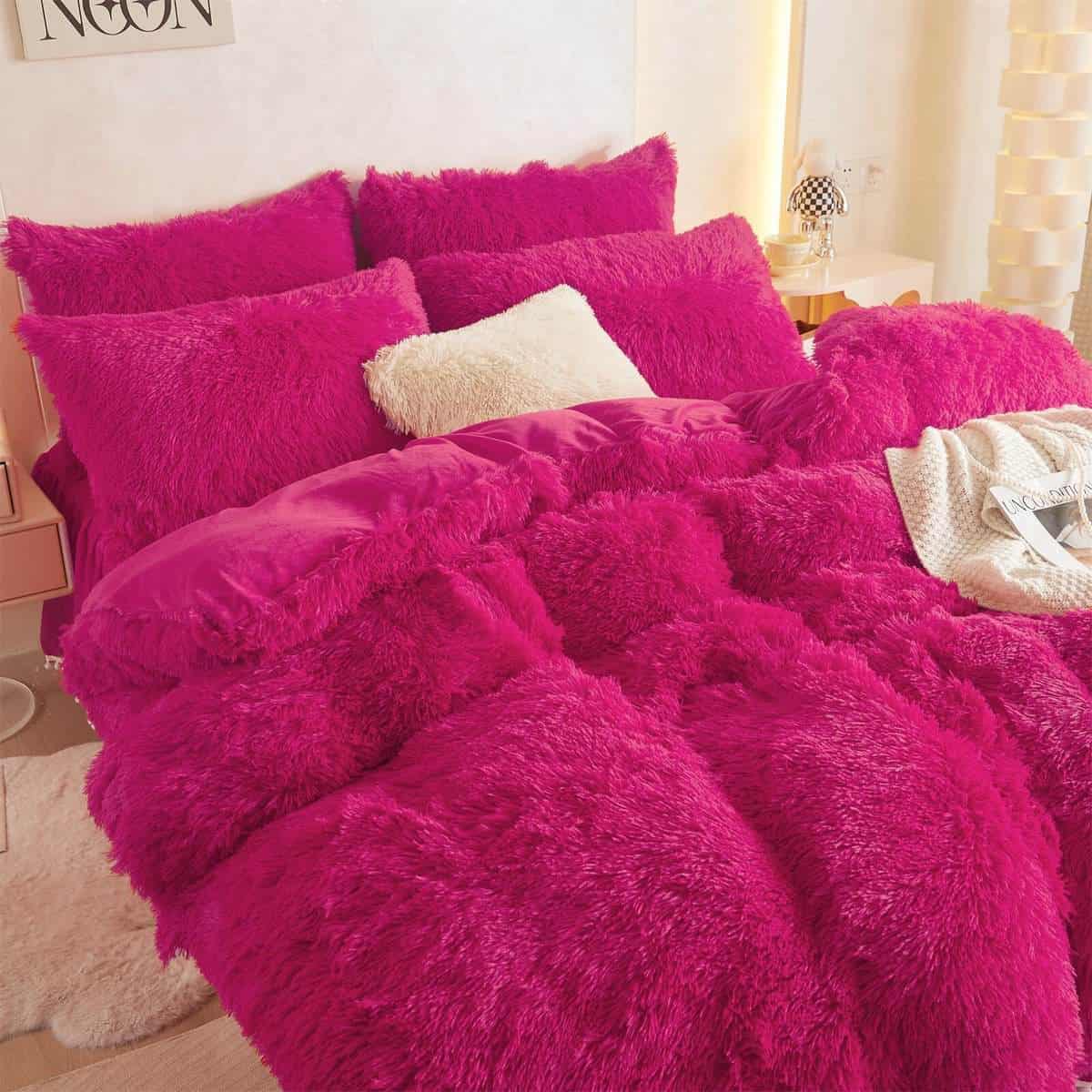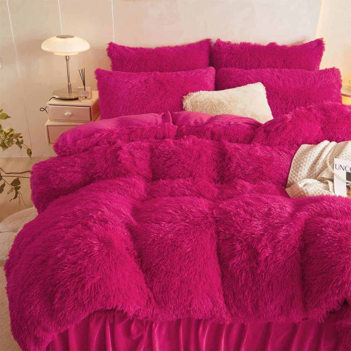 Con su suave y esponjosa tela de felpa, la funda nórdica de felpa en rosa caliente puede ofrecer a las personas un tacto suave y suave como la leche. La funda de terciopelo cuenta con un especial sistema de circulación de calor que podría retener firmemente el calor y mantener las sábanas calientes y cómodas, proporcionando a las personas un sueño suave y constante, especialmente para los durmientes descalzos. La funda de almohada de piel sintética mantendrá una temperatura constante mientras duermes, y no sentirás frío ni siquiera en invierno. El material de la funda de almohada es algo higroscópico y, con el mismo color de la funda nórdica de felpa en rosa caliente, puede aportar un color extra a la decoración de tu hogar. Con cierre de cremallera metálica duradera que no dañará ni rayará tu piel. El diseño de la correa fija en las cuatro esquinas evitará eficazmente que se mueva mientras descansas. Además, la bonita funda de almohada de piel sintética hace que el conjunto de cama esponjoso de felpa sea más simple y elegante. HAIHUA ofrece un juego de cama rosa caliente perfecto y cómodo que es un buen regalo para tus amigos en invierno. Ya sea Navidad, San Valentín, cumpleaños o bodas, este juego de conforter de piel sintética en rosa caliente será un regalo perfecto y cómodo. Agradecemos que ames nuestros productos al igual que nuestros otros críticos de 5 estrellas, por eso ofrecemos un servicio de devolución y reemplazo de 30 días. Si tienes alguna pregunta, por favor contáctanos para obtener una solución satisfactoria.