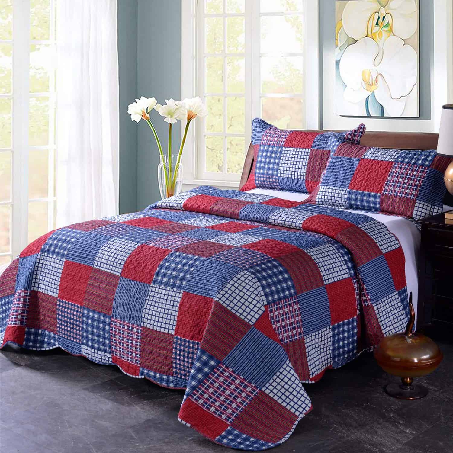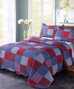 Juego de Colcha de Cuadros Rojos y Azules Hailea Tamaño