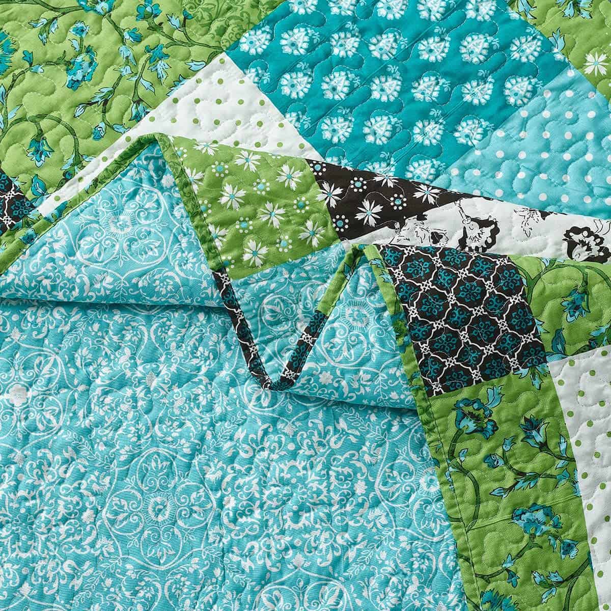 Reversible: da la vuelta a la colcha para revelar un estampado de paisley en blanco con un vibrante fondo turquesa. Colcha lujosamente grande para los colchones más profundos de hoy en día, sin arrugas y tejida con fibras de larga duración para proporcionar años de comodidad.
