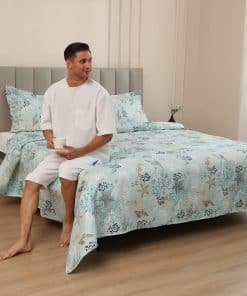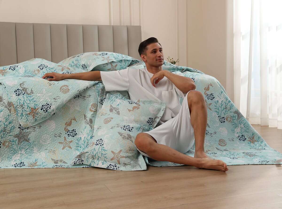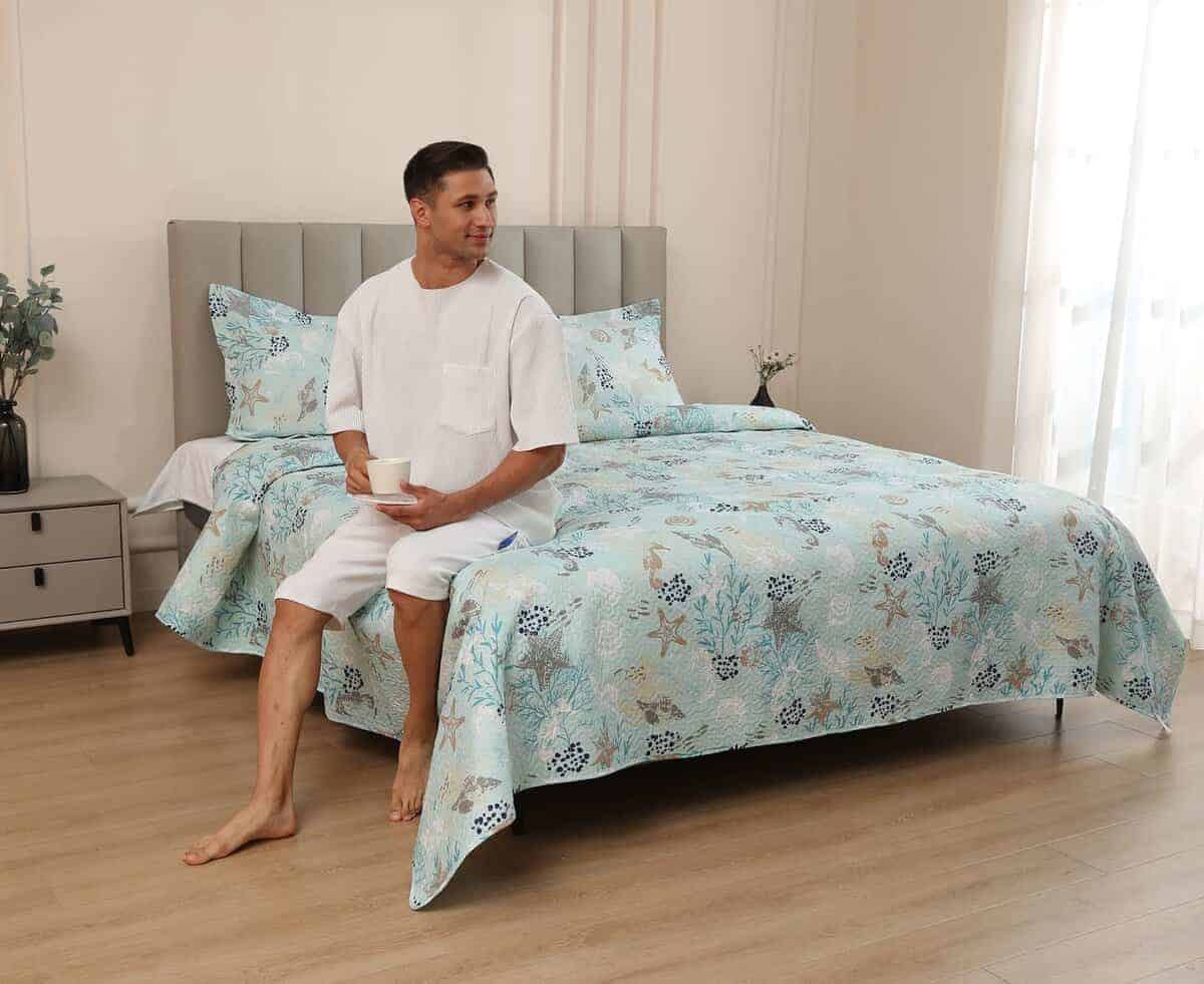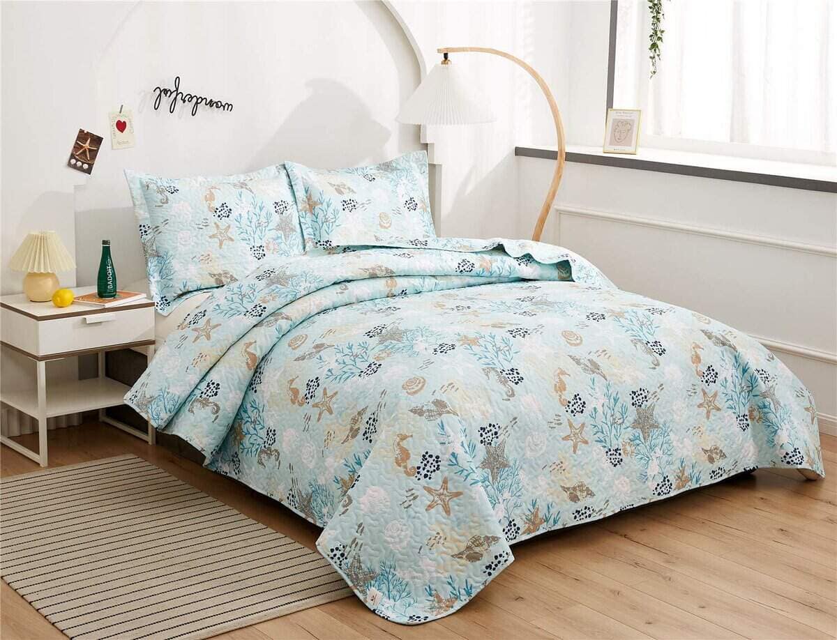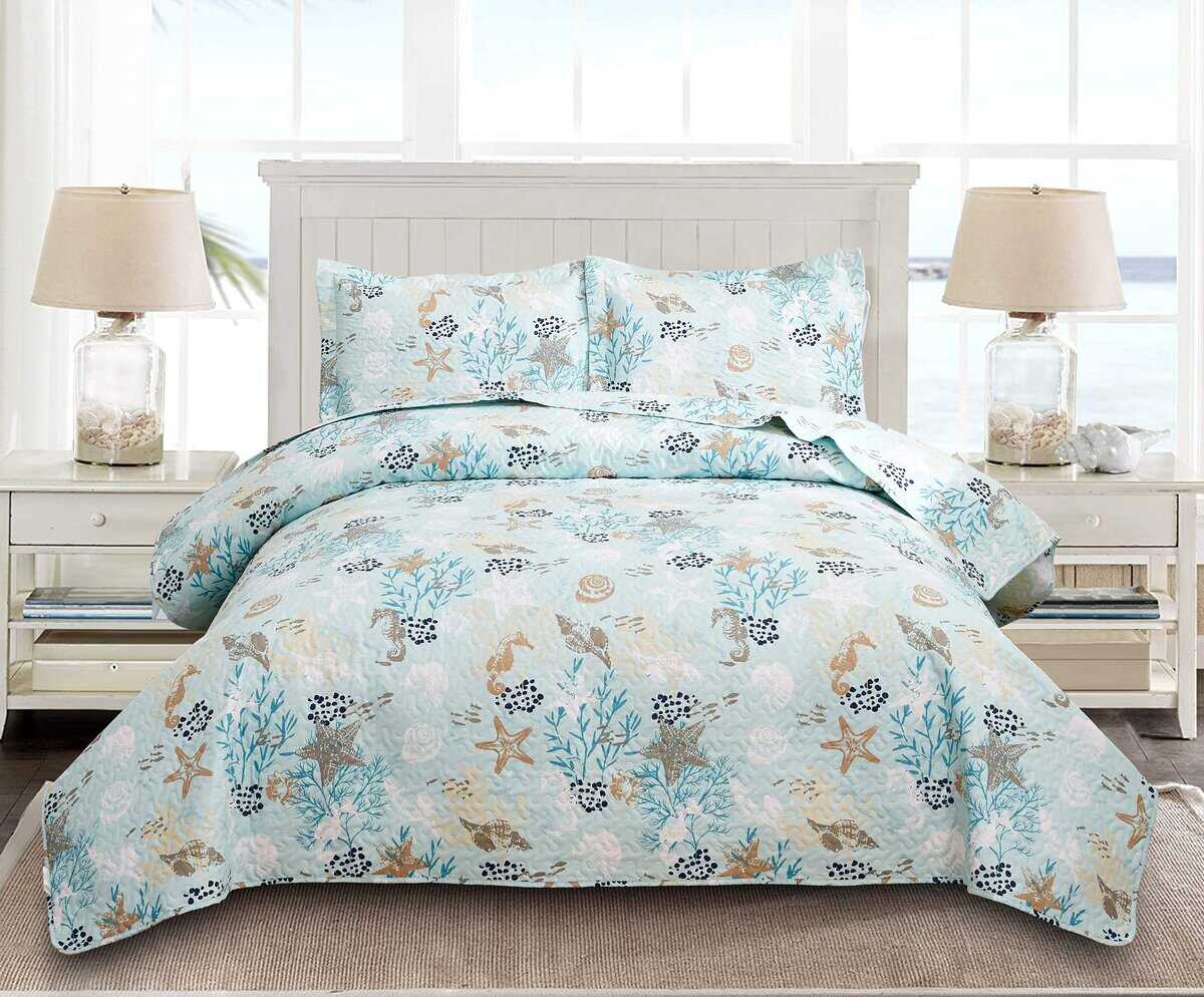 Juego de Colcha de Playa Costera de 3 Piezas Azul Tema