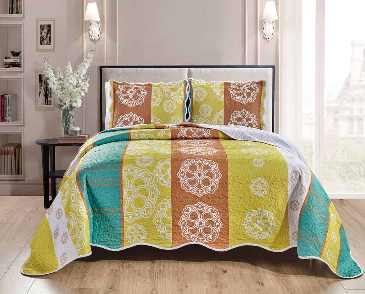 Mejora la decoración de tu dormitorio con esta lujosa colcha extragrande en color azul amarillo óxido blanco y diseño geométrico, perfecta para cualquiera que quiera mejorar su colección de ropa de cama con estilo y comodidad. Hecho de microfibra premium y ultra suave, esta colcha ligera pero duradera es ideal para uso durante todo el año, proporcionando el equilibrio adecuado de calor y transpirabilidad para mantenerte fresco en verano y acogedor en invierno. Estos diseños extragrandes ofrecen una cobertura generosa y están disponibles en camas Twin, Full Queen, King y California King, ofreciendo un aspecto elegante, lujoso y a medida que complementa maravillosamente cualquier estilo, desde moderno, rústico, vintage, y cottage hasta costero, minimalista y clásico. Perfecto para una variedad de espacios que incluyen dormitorios principales, habitaciones de invitados, dormitorios de niños y alquileres de vacaciones, este versátil cubrecamas se puede usar como mantel, manta, edredón alternativo o manta decorativa según tus necesidades. Está diseñado para ofrecer comodidad y durabilidad, siendo lavable a máquina, resistente a la decoloración, sin arrugas y de secado rápido, lo que lo hace ideal para hogares ocupados, hogares aptos para mascotas y familias. Esta colcha de alta calidad y todo uso agrega un toque suave, acogedor e invitador a cualquier habitación, convirtiéndola en una excelente opción para entusiastas de la ropa de cama de lujo o cualquier persona en busca de elementos esenciales de ropa de cama suaves, cómodos y hermosos. Perfecto como regalo de inauguración, regalo de bodas, regalo de cumpleaños o regalo de vacaciones para amigos y familiares, esta elegante y sofisticada colcha combina elegancia, practicidad y diseño atemporal, asegurando que permanezca como una parte querida de tu hogar durante años.