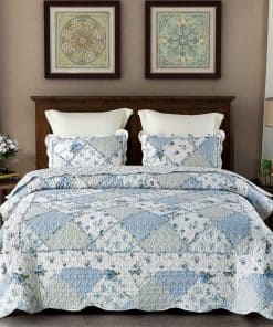 Este juego de colcha de retazos floral azul VIVILINEN está hecho con un suave tejido liviano y cómodo, perfecto para todo el año. Con un tamaño de 87″ x 95″ para la colcha y 20″ x 28″ para las fundas de almohada, es perfecto como colcha, cubrecamas o para mantenerse abrigado en viajes. El diseño de colcha de retazos floral combina estampados florales y paisley para embellecer aún más el diseño vintage lavado, creando un ambiente encantador y elegante en tu dormitorio. Puede usarse como colcha o sábana en primavera y verano, y como sábana gruesa en otoño e invierno. Fácil de cuidar, se puede lavar a máquina y secar en secadora. Nota: Debido al embalaje al vacío, puede presentar arrugas que se pueden restaurar dejándolo reposar o lavándolo.