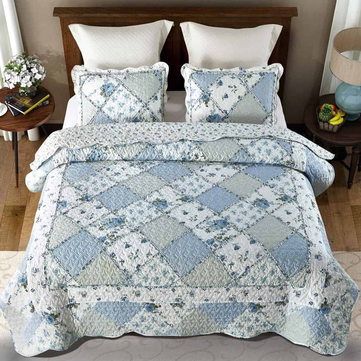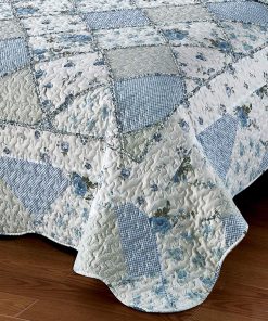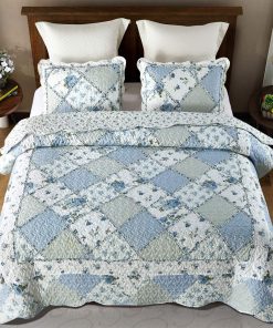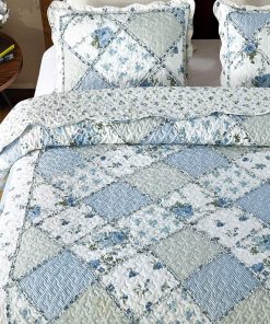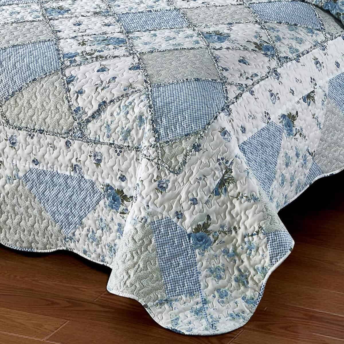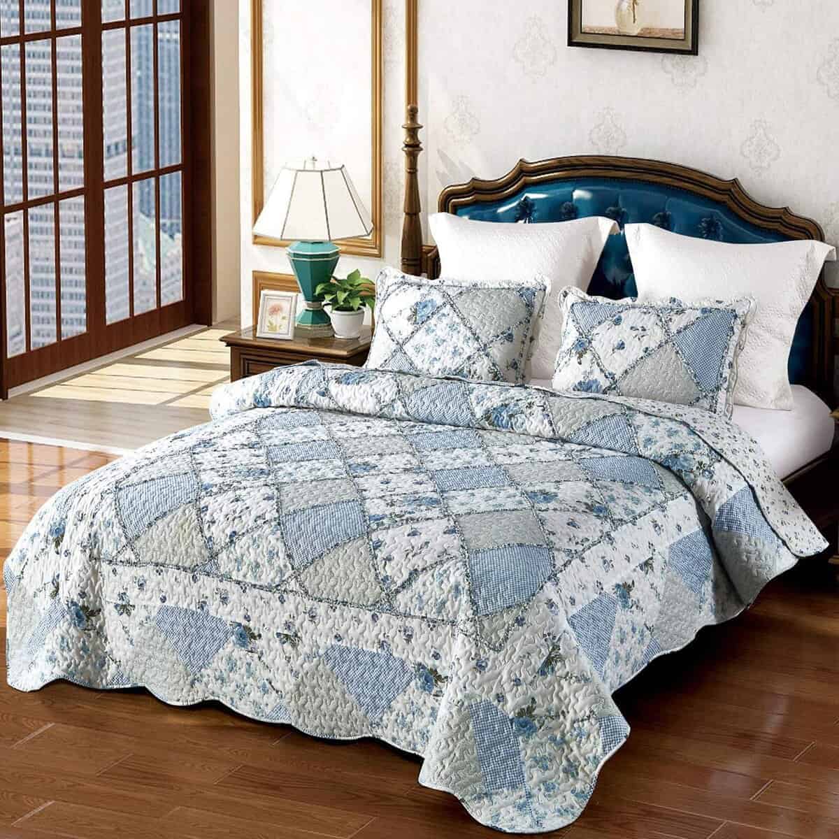 Juego de colcha de retazos floral azul VIVILINEN, tamaño