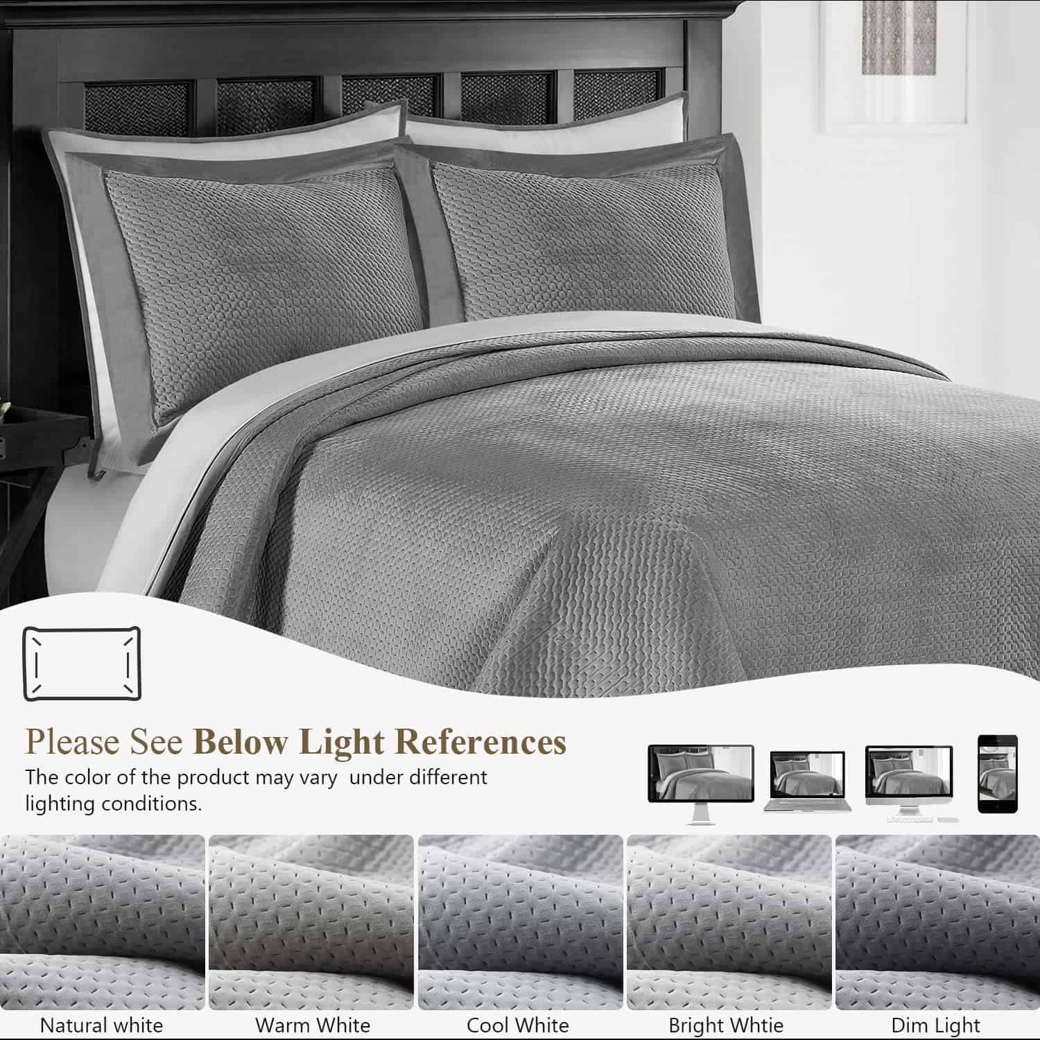 1. Value Sets- El juego de cobertor incluye 1 cobertor y 2 fundas de almohada. El tamaño Twin solo tiene una funda de almohada. Queen: 1 cobertor (88»x 92») / 2 fundas de almohada (20»x 26») 2; King: 1 cobertor (102»x 92») / 2 fundas de almohada (20»x 36») 2. NOTA: El tamaño Twin solo tiene 1 cobertor y 1 funda de almohada. El tamaño King con paquete regalo es adecuado para amigos. 2. Tipo de material- Utilizamos Microfibra de Poliéster Transpirable de Alta Calidad al 100%, lo que le da su toque lujoso y su textura super suave. El material frontal es terciopelo detallado de poliéster suave y la fibra trasera es terciopelo sherpa acogedor, lo que puede hacer que duermas mucho mejor. 3. Para todas las estaciones- El juego de cobertor es adecuado para todas las estaciones. Te brindará una experiencia transpirable y ligera, pero mantendrá tu cuerpo caliente en otoño e invierno o en habitaciones con aire acondicionado en verano debido a su gran capacidad para mantener el calor. 4. Diseño único- El diseño reversible con relieve del cobertor te proporciona diferentes sensaciones de suavidad para promover la calidad de tu sueño con un lado suave y aterciopelado y el otro. La apariencia diferente de los dos lados del cobertor también puede brindarte diferentes experiencias de uso. 5. Instrucciones de uso: Lavar en ciclo suave bajo 30 . No usar detergente que contenga blanqueador. Planchar a baja temperatura. No limpiar en seco. Lavar con colores similares. No presionar fuerte para evitar arrugas.