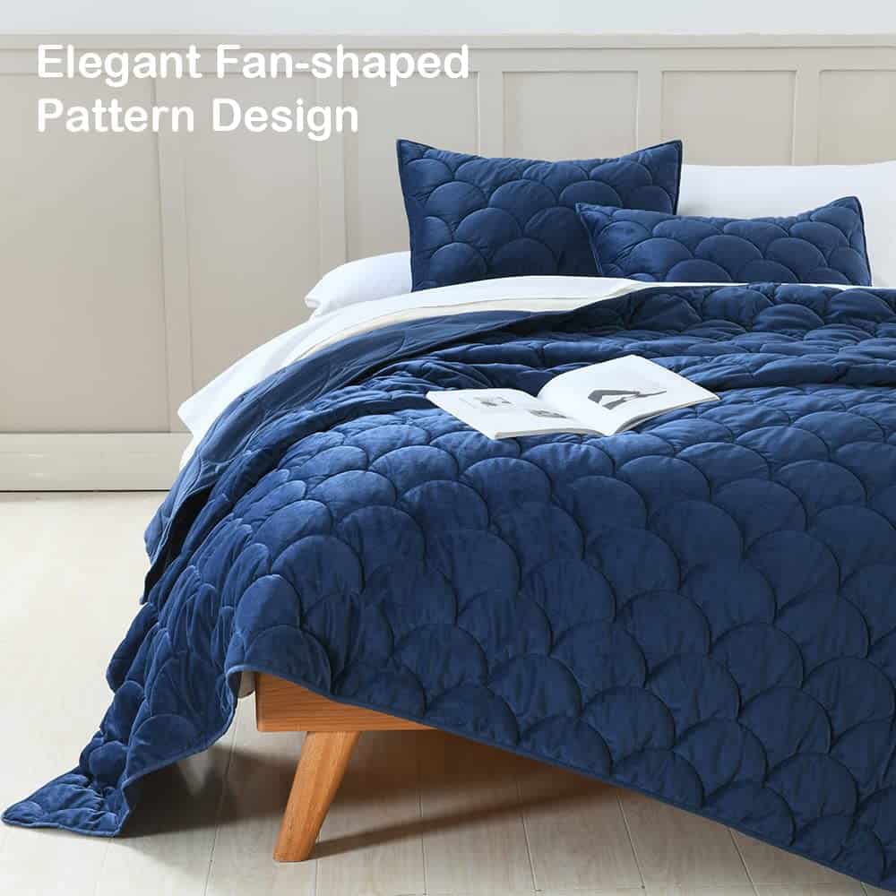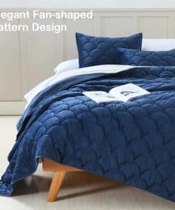 1. Un Perfecto Juego de Cama de Terciopelo: Este es un agradable juego de confort ligero, la calidad y la artesanía son sólidas. Tiene algo de brillo debido al microfibra de terciopelo. La funda de almohada a juego también está hecha de terciopelo, hace que se sienta tan agradable en su cabeza y cara. El material es muy suave. Se siente bien en la piel. 2. Diseño de Patrón en Forma de Abanico: Diseño simple pero elegante de patrón en forma de abanico, look único y chic, gran combinación con la lujosa tela de terciopelo. Definitivamente le dará un toque especial a su habitación. 3. Tamaño Completo/Queen Incluido: 1 Colcha de 90″ x 96″, 2 Fundas de Almohada de 20″ x 26″. 4. FÁCIL CUIDADO – Esta colcha es fácil de cuidar y resistente a desvanecimientos, arrugas y encogimiento. Lavar a máquina por separado en agua fría, secar a baja temperatura, No usar lejía. 5. Postventa – Puede haber alguna diferencia de color bajo diferentes luces. Si tiene alguna pregunta sobre color/tamaño o calidad, por favor contáctenos. Estamos dispuestos a ayudar.
