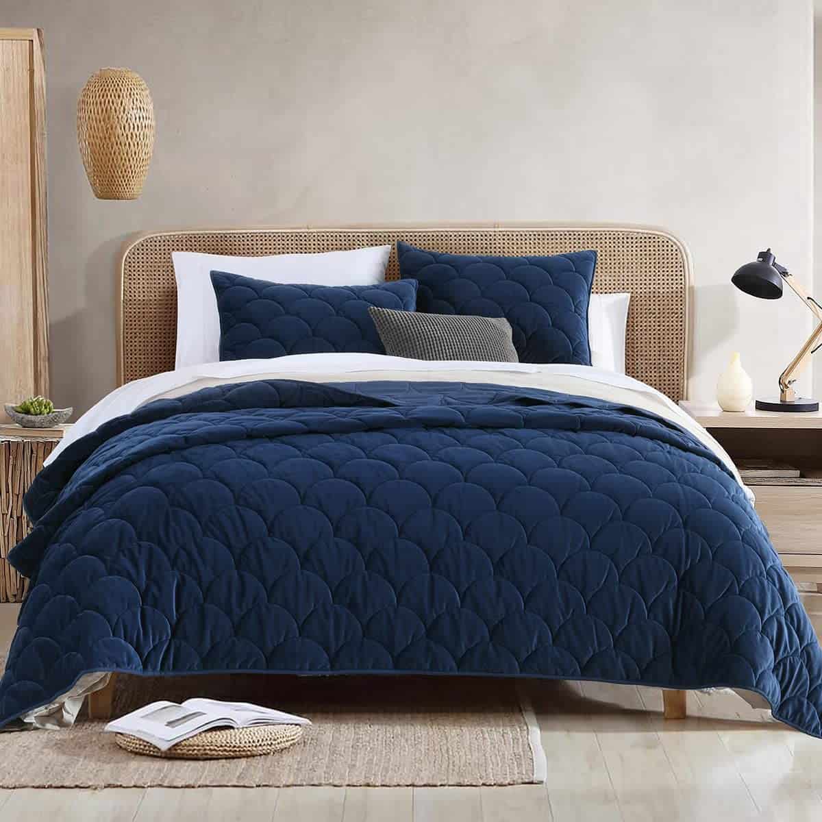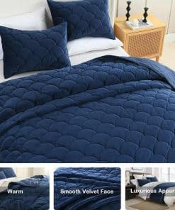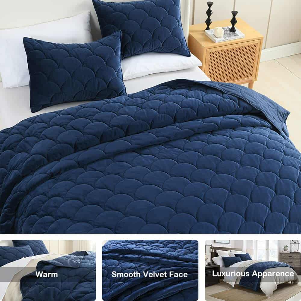 Juego de Colcha de Terciopelo para Cama Queen Size, Azul