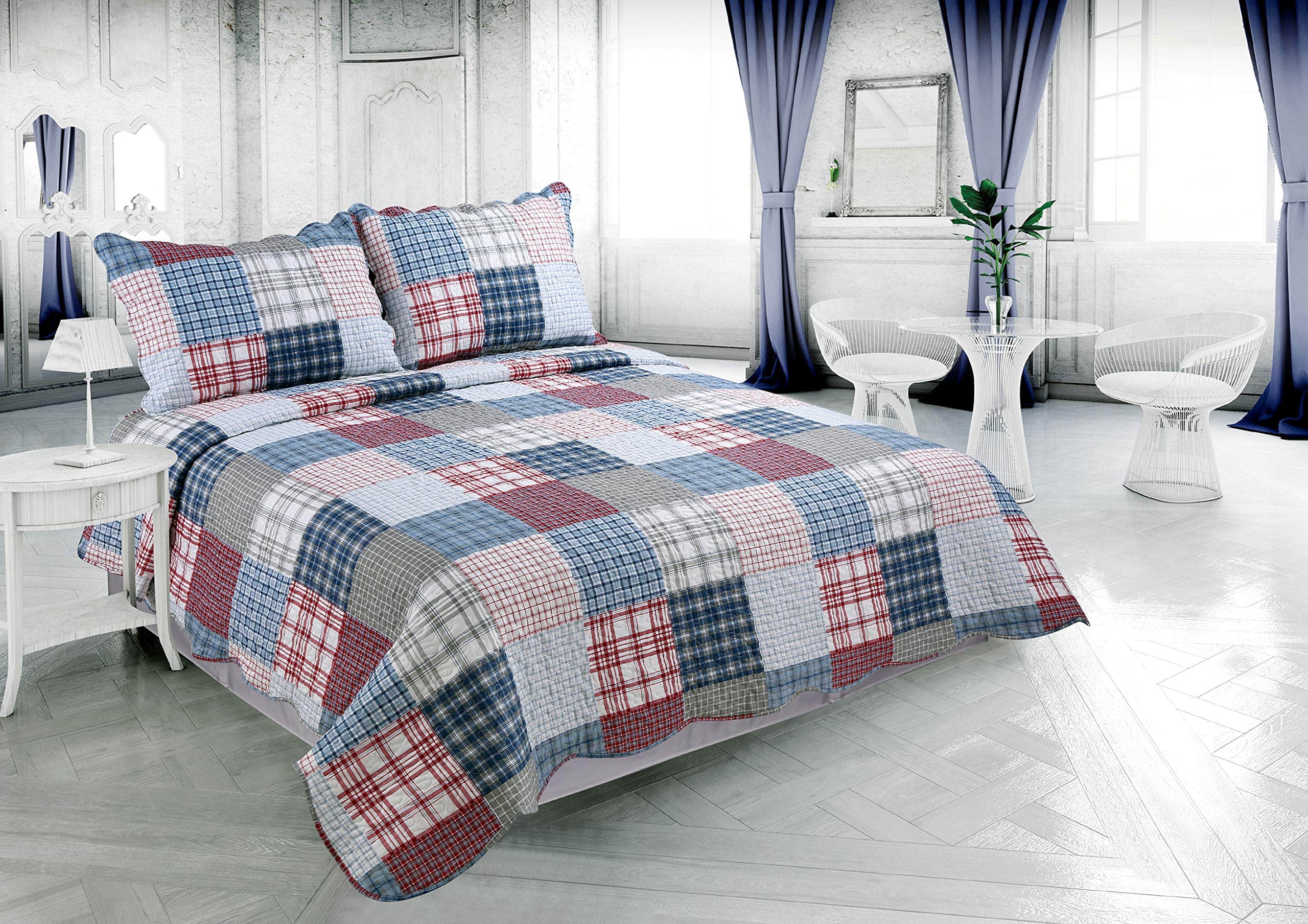 Tamaño Disponible: Tamaño Individual Incluido 1 Colcha – 68 x 90 Pulgadas y 1 Funda de Almohada – 20 x 30 + 2 Pulgadas; Tamaño Queen Incluido 1 Colcha – 92 x 94 Pulgadas y 2 Fundas de Almohada – 20 x 30 + 2 Pulgadas; Tamaño King Incluido 1 Colcha – 106 x 94 Pulgadas y 2 Fundas de Almohada – 20 x 40 + 2 Pulgadas. Comodidad en Todas las Estaciones en Diseño Suave y Moderno. Esta Colcha Tradicional de Lujo con Estampado de Alta Calidad en Tamaño Grande es una Gran Manta para Todo el Año. Es lo Suficientemente Ligera para Usar en Climas Más Cálidos, pero También se Mantiene en una Noche Fría. Es una Colcha Perfecta para Mantener tu Cuerpo Caliente y sin Estrés. La Colcha no es Demasiado Gruesa y su Peso no es Demasiado Pesado para Mantenerte Cómodo y Evitarte Sudar. Costuras Ordenadas: Detallada Costura Hermosa que le Da a tu Dormitorio un Encanto Clásico para Refinar tu Cama, Funcional y Fabuloso. La Doble Costura con Aguja Doble Evita que el Relleno se Desplace para Asegurarse de una Comodidad Duradera y una Mayor Durabilidad. Los Detalles Texturizados y los Bordes Ondulados Añaden Encanto a los Patrones Bordados. Microfibra Hipoalergénica Súper Suave Cosida en una Técnica de Capas Múltiples para Crear una Colcha de Cama con Estampado de Mezcla de Algodón Ligero y Duradero con Estilo para Comodidades Durante Todo el Año. Versátil y Regalos: Este Juego de Colcha Estampada se Puede Utilizar en la Habitación Principal, Dormitorio, Habitación de Invitados, Habitación de Niños, Casa Rústica de Vacaciones, Cabaña, Casa del Lago, Casa de Montaña, Cabaña, Campamento, Escenografía del Hogar o Decoración de Lodge. Gran Regalo para Dar a Padres, Madres, Esposos, Esposas, Amantes, Miembros de la Familia o Personas Mayores en Cumpleaños, Día de la Madre, Día del Padre, Navidad o Cualquier Fiesta.