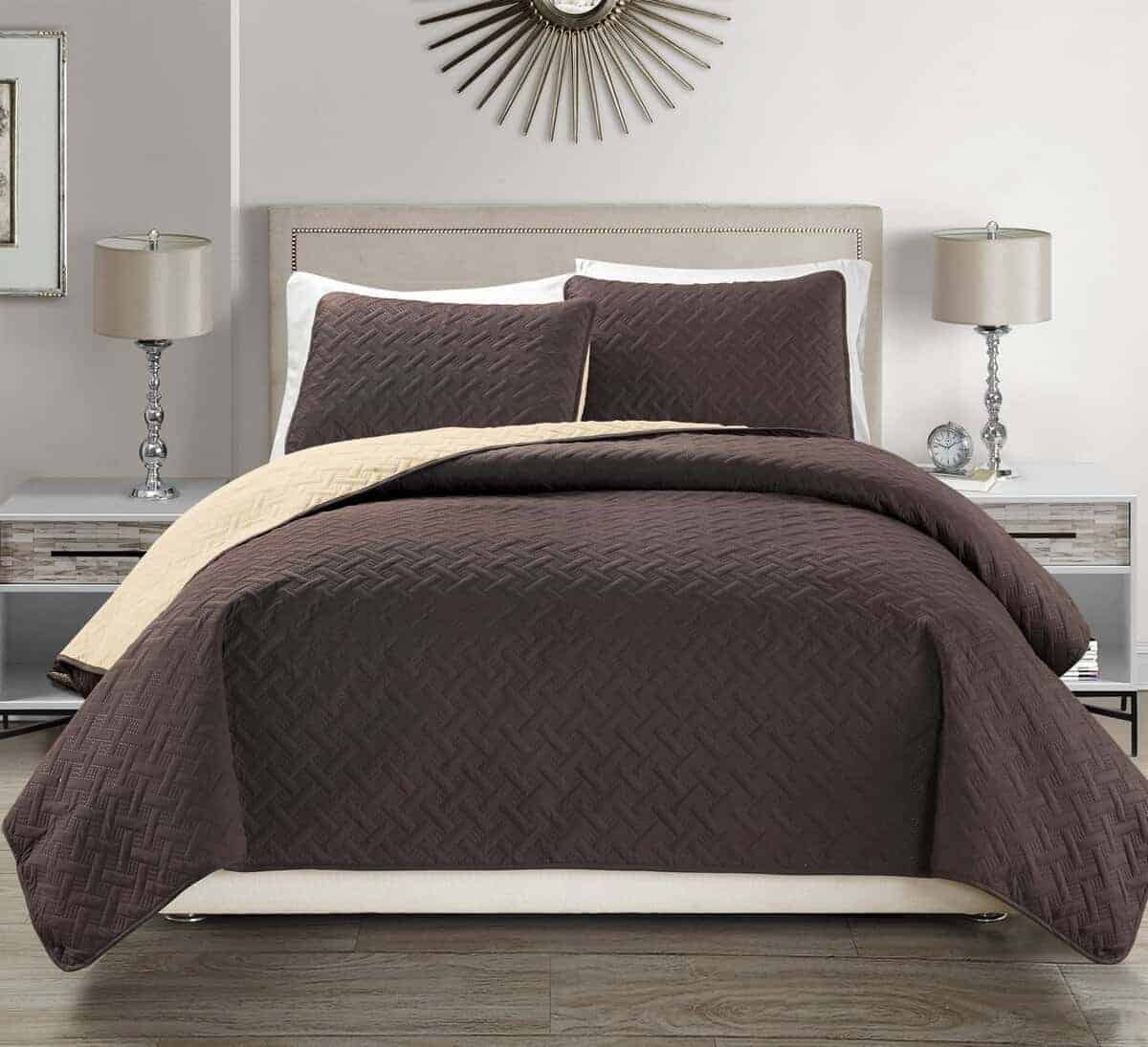 Juego de Colcha/Edredón Reversible con Textura de Café