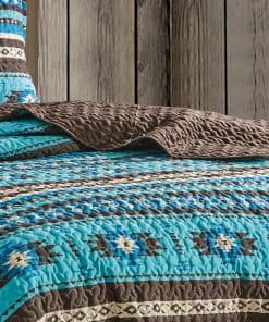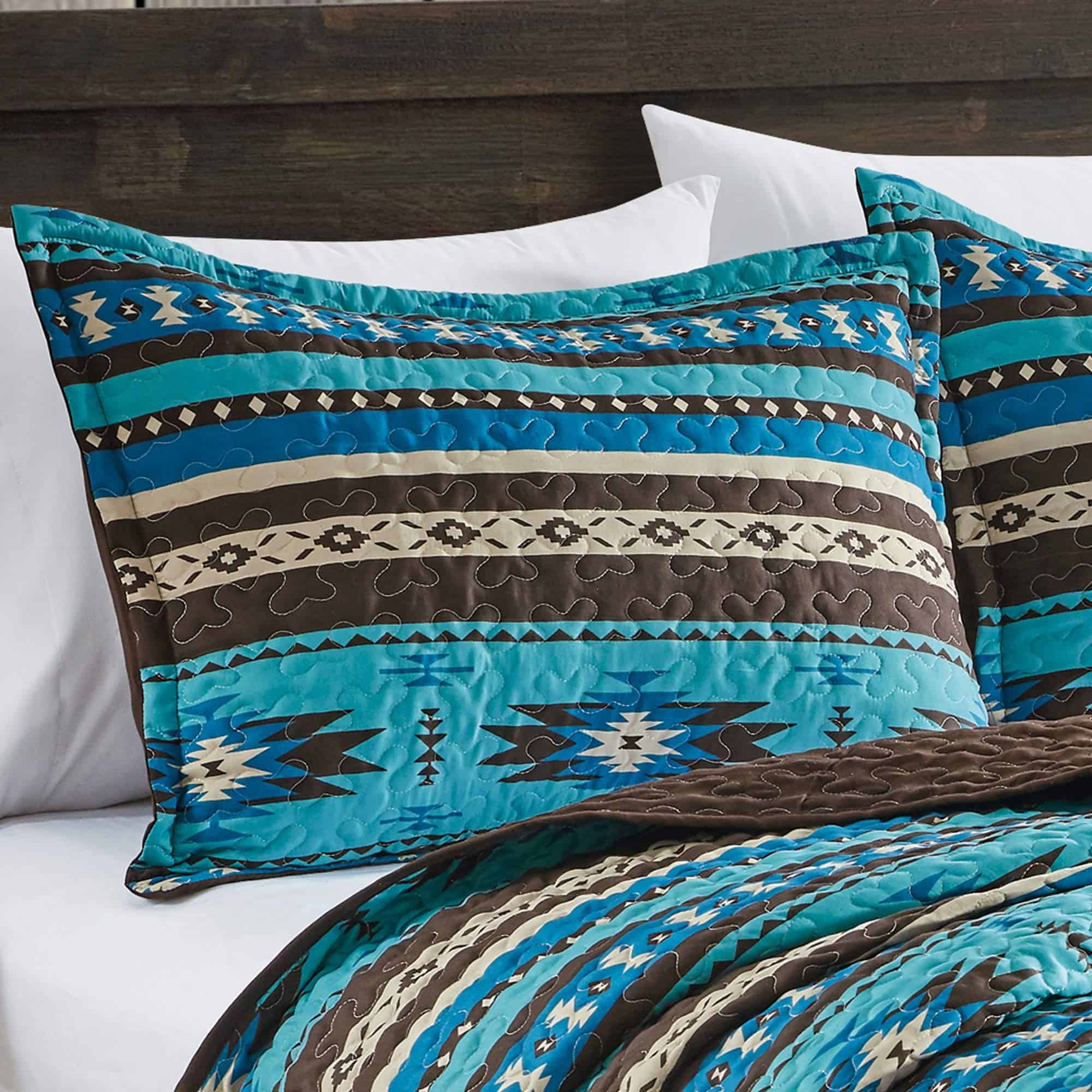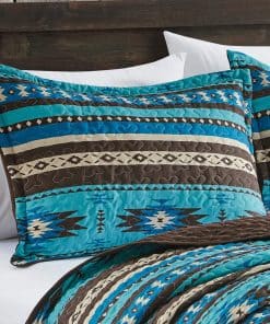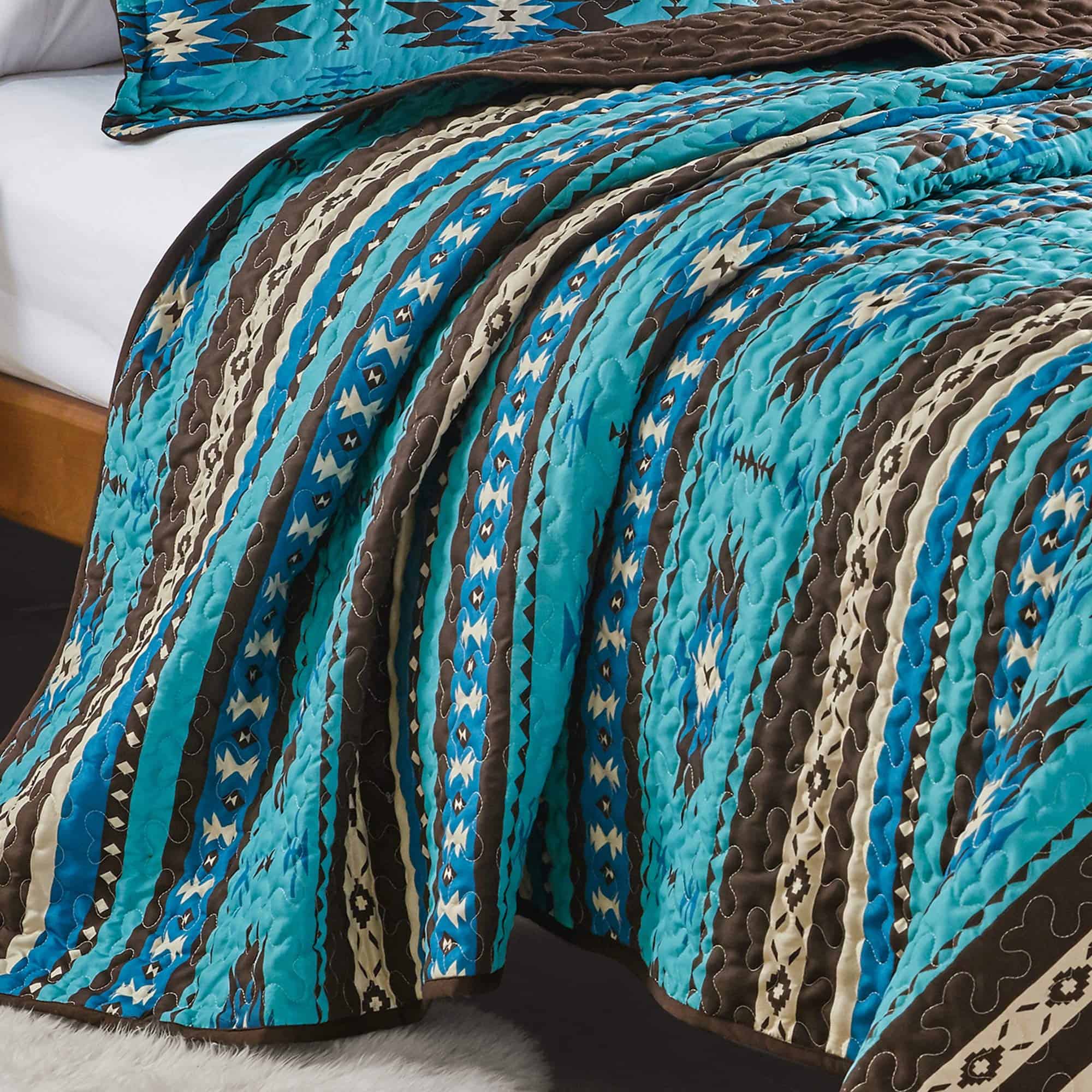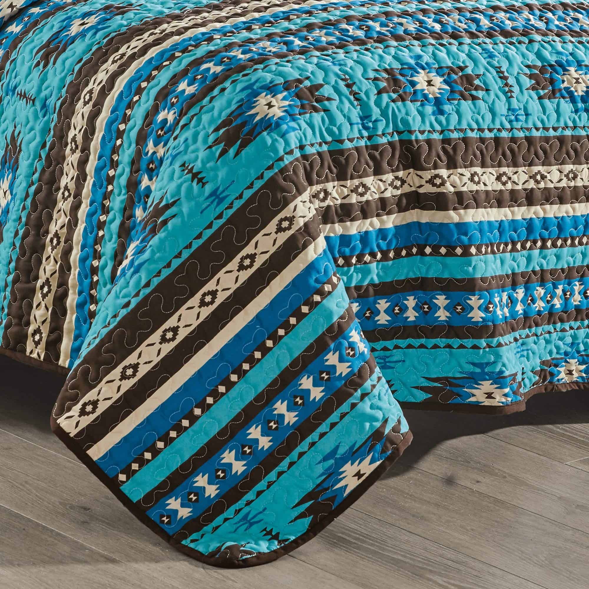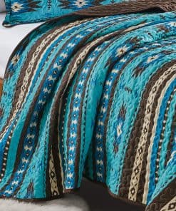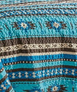 Juego de Colcha Fina Estampada de 3 Piezas Tamaño King Oversize, Edredón de Todas las Estaciones Patrón Nativo Americano Navajo con Fundas de Almohada Cubrecamas en diseño Turquesa, Marrón, Caqui, Estilo Suroeste. Fabricado en microfibra de poliéster 100%. Lavable a máquina en agua fría con colores similares. Secar a fuego lento. No usar blanqueador.