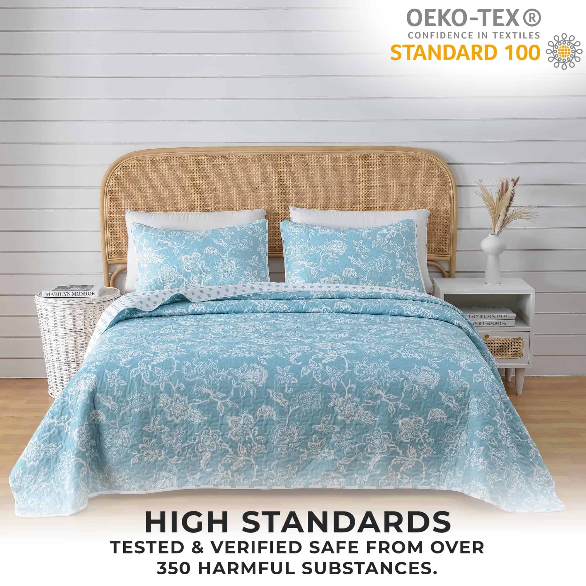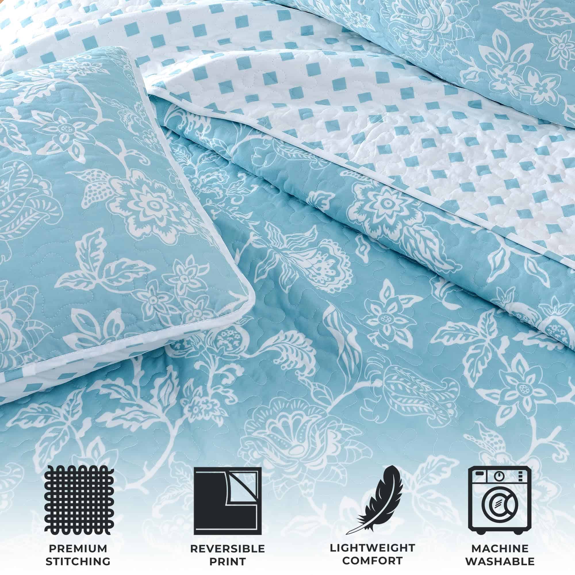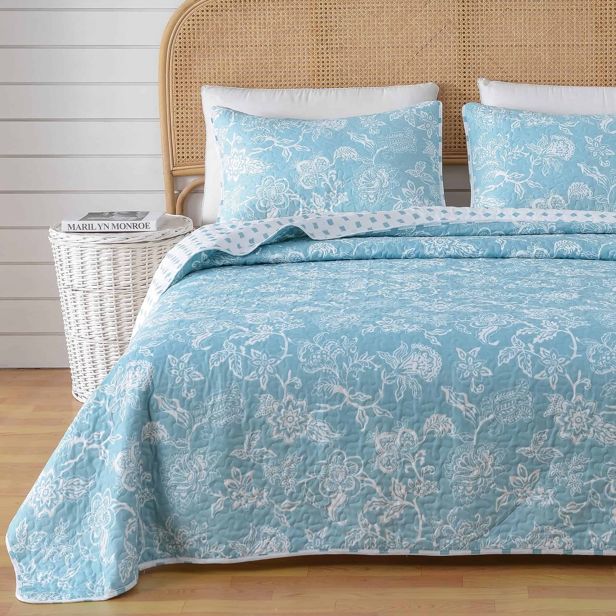 Juego de Colcha Floral Full/Queen con Fundas de Almohada,