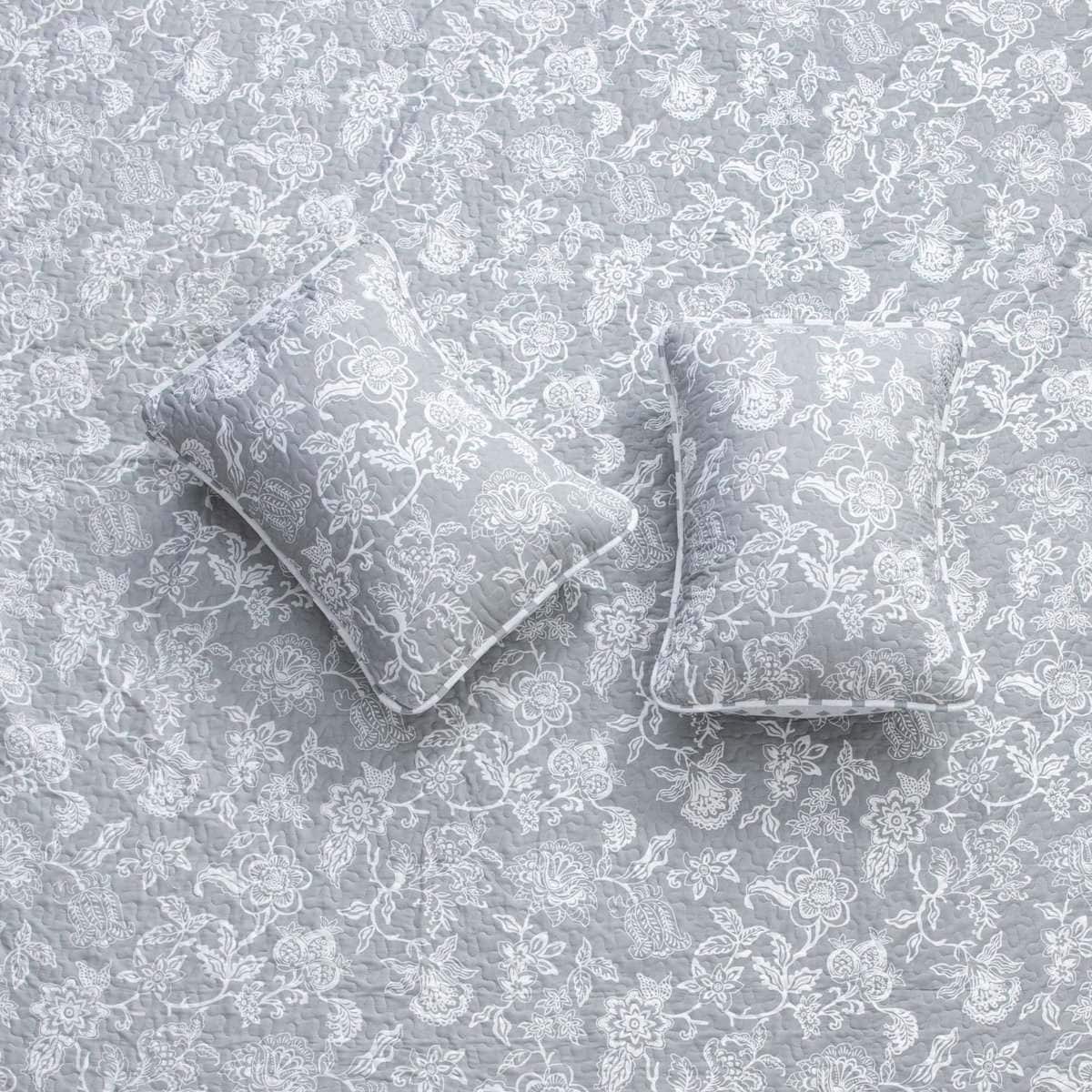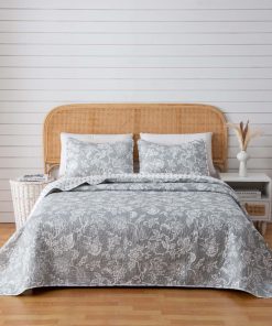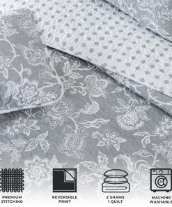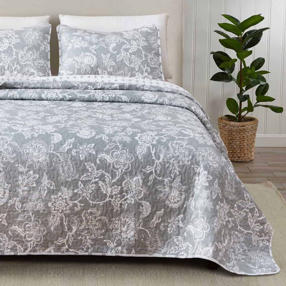 1. ¿Qué incluye este juego de ropa de cama? 1 colcha para cama matrimonial/queen. Este edredón queen es de 90″ x 90″ y viene con 2 fundas estándar de 20″ x 26″. Esta colcha azul y taupe/tan cuenta con una construcción gruesa, pero ligera que es perfecta para superponer.