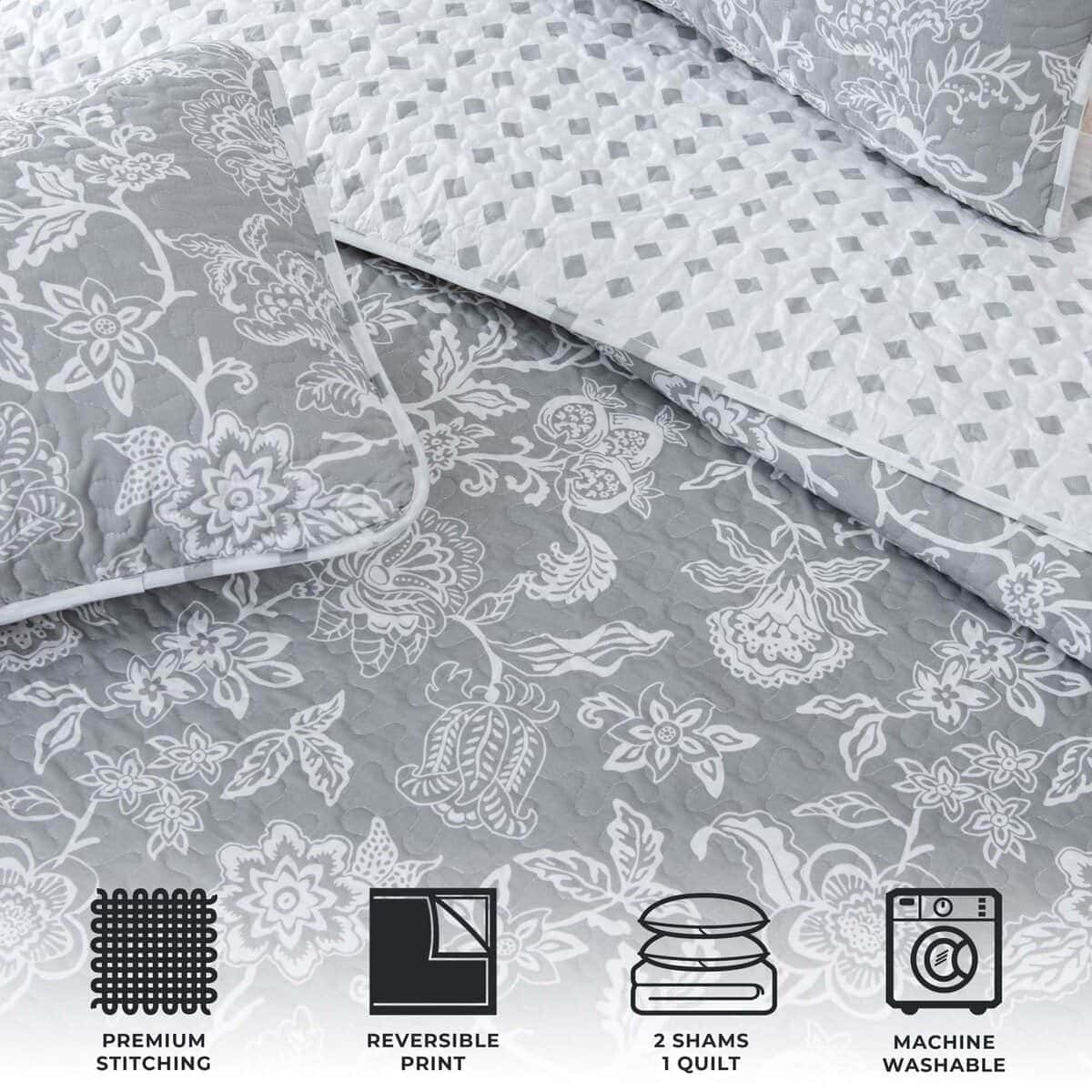 2. Suave, Ligero y Cómodo: Esta colcha de alta calidad y cosida presenta un material de microfibra súper suave que te mantendrá cálido y cómodo durante todo el año. Esta colcha para cama queen está diseñada para ser utilizada en todas las estaciones, con su relleno de alta calidad de 120 GSM de Poliéster 100% y Cubierta de Microfibra de 90GSM 100%. No solo esta colcha es acogedora y duradera, también cuenta con un hermoso diseño para complementar cualquier decoración.