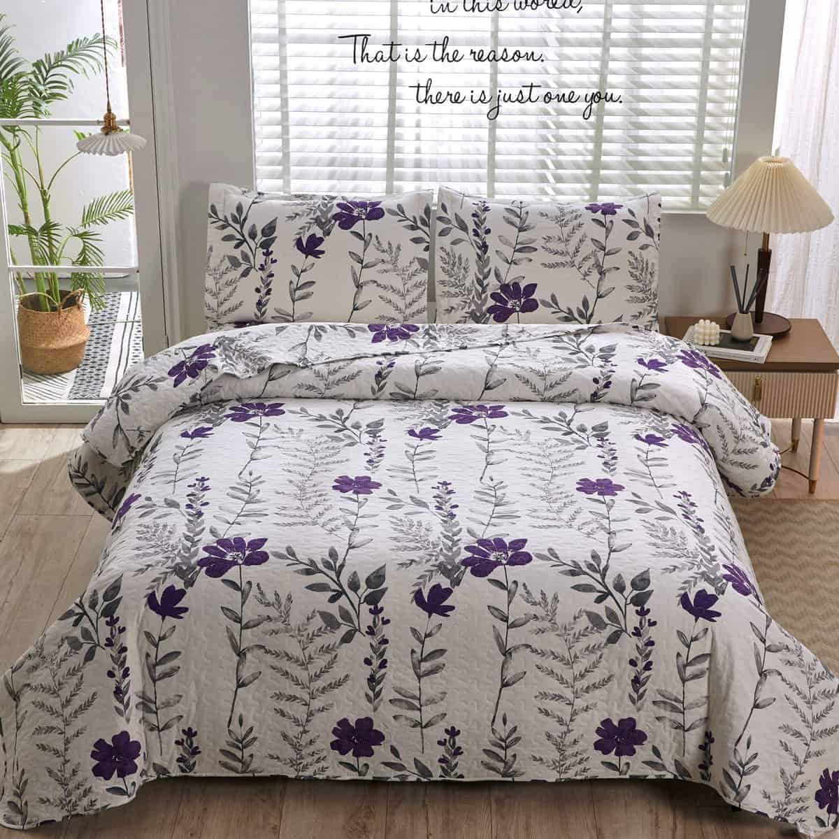 El conjunto de colcha floral tamaño King está fabricado con materiales suaves, acogedores y cálidos. Hecho de microfibras ultra suaves al 100%, que brindan suavidad duradera y máxima relajación con resistencia a la decoloración y las manchas mejor que el algodón. Diseño reversible para todas las estaciones, ligero y acogedor. Ideal como colcha o cubrecama en primavera y verano, y también como manta en invierno. Fácil de cuidar y duradero, lavable a máquina en agua fría y secar en baja temperatura. No se desvanece, encoge ni se arruga. Ideal para regalos de bodas, cumpleaños y otras ocasiones especiales.