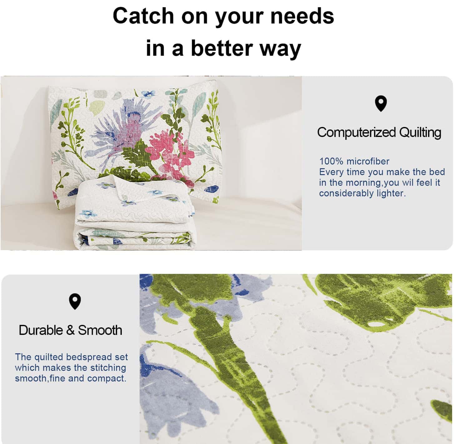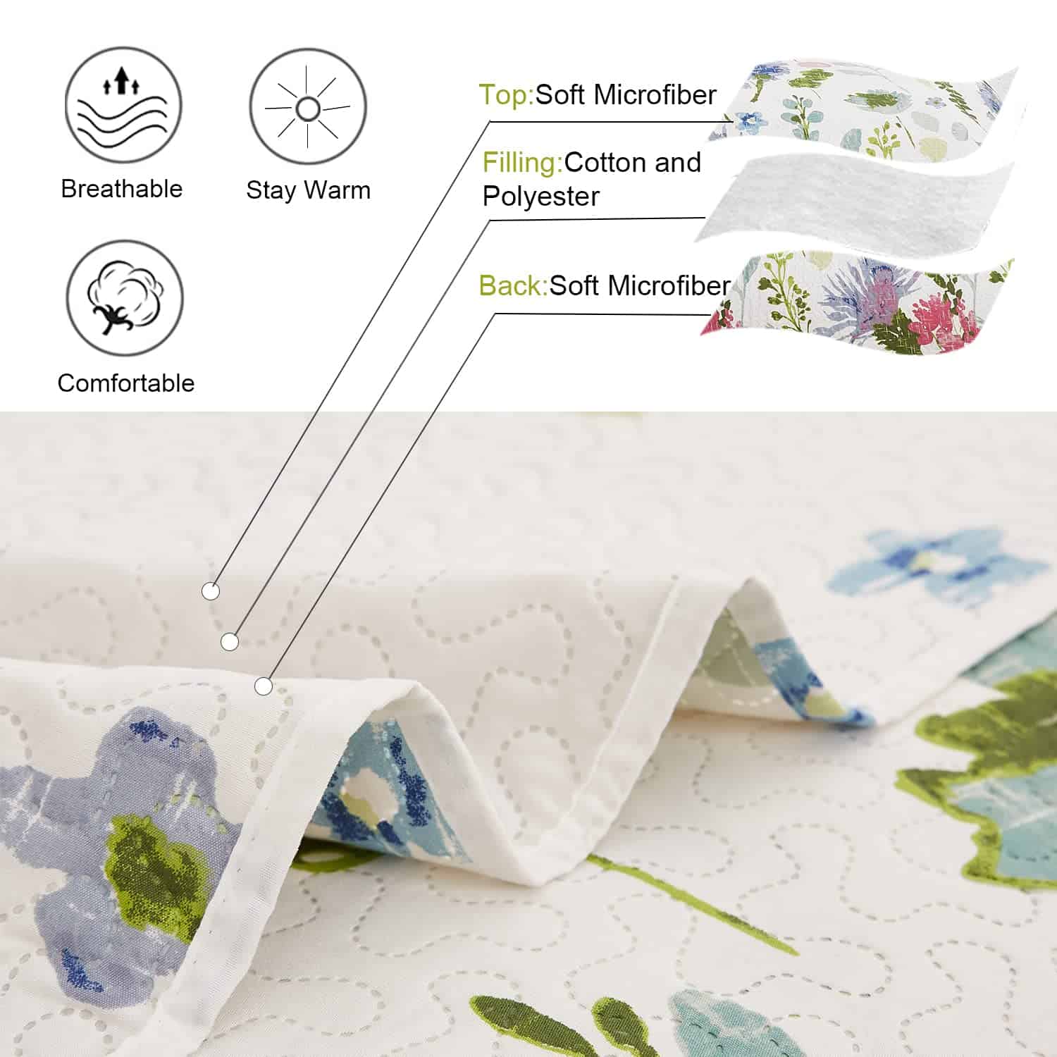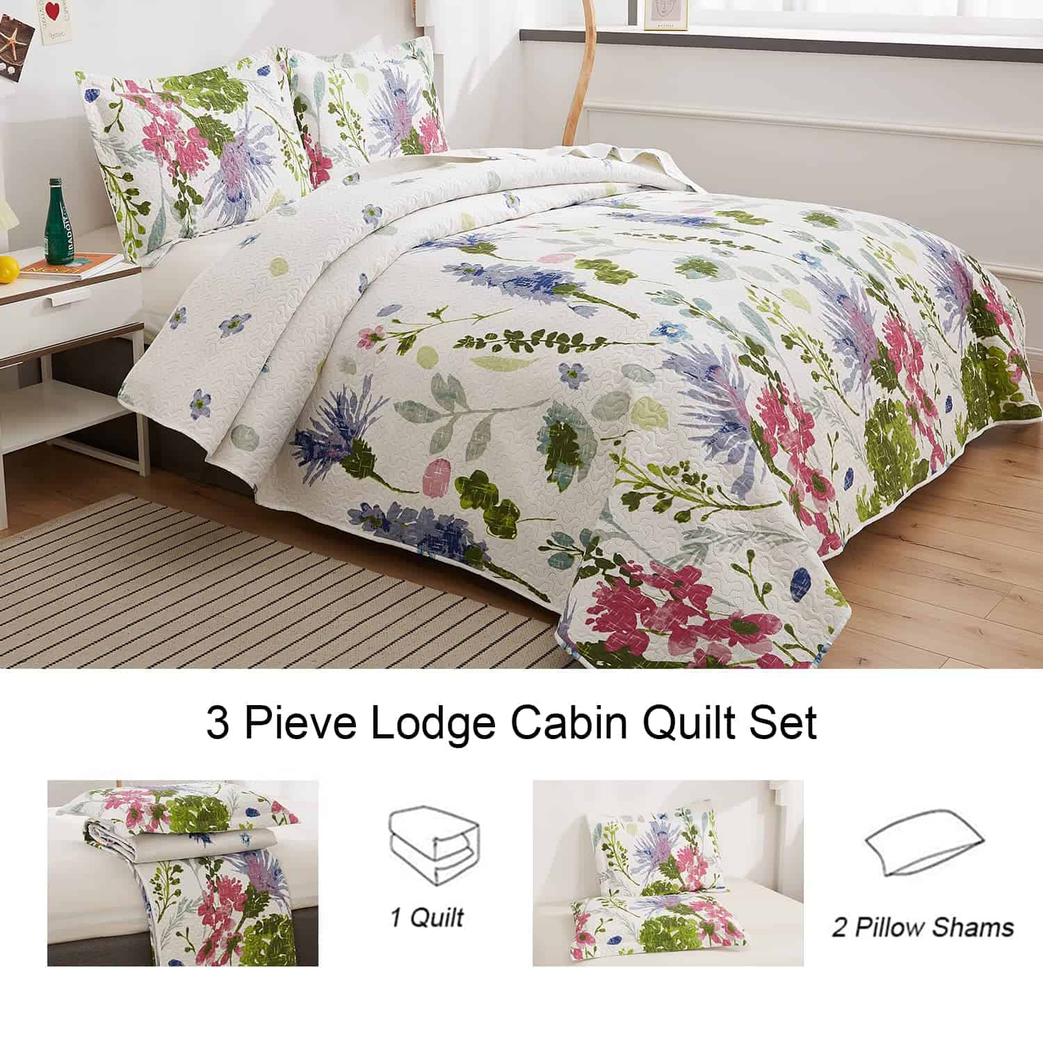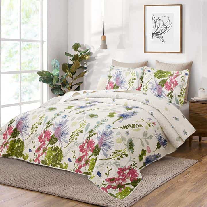 Juego de Colcha Floral Ycosy Reversible Acolchados de