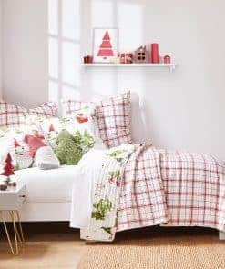 1. DISEÑO GNOME FOREST: Una de nuestras colchas más populares, Gnome Forest está inspirada en cuentos navideños y pinturas de niños en Navidad. La parte delantera presenta gnomos vestidos para Navidad, montando trineos y trayendo regalos, y se invierte a un cuadro rojo sobre fondo blanco. Un borde encuadernado proporciona contraste y textura para completar el look. 2. LUJO SUAVE Y CÓMODO: Hecho de la microfibra más suave y relleno con un relleno rico en algodón (que incluye algodón, poliéster y otras fibras), esta colcha nunca se sentirá pesada, rígida o incómoda. La colcha Gnome Forest tiene un tacto ultra suave que simplemente te encantará. Nuestra colcha (102×86 pulg.) y las fundas de almohada a juego están diseñadas para darle a tu dormitorio una sensación de confort y lujo. 3. CUIDADO FÁCIL: Pre lavada para tu comodidad, la colcha Gnome Forest es fácil de mantener. Simplemente lava a máquina en un ciclo suave y frío, luego seca al aire o a baja temperatura en secadora. 4. COORDINA LA DECORACIÓN DE TU HABITACIÓN: Crea un espacio de dormitorio maravilloso con nuestra colcha reversible coordinada. El diseño rojo, verde y blanco agrega un toque divertido de vacaciones a tu hogar y combinará con una variedad de estilos y decoraciones de dormitorio. También puedes refrescar tu habitación con otros artículos de la colección Gnome Forest.
