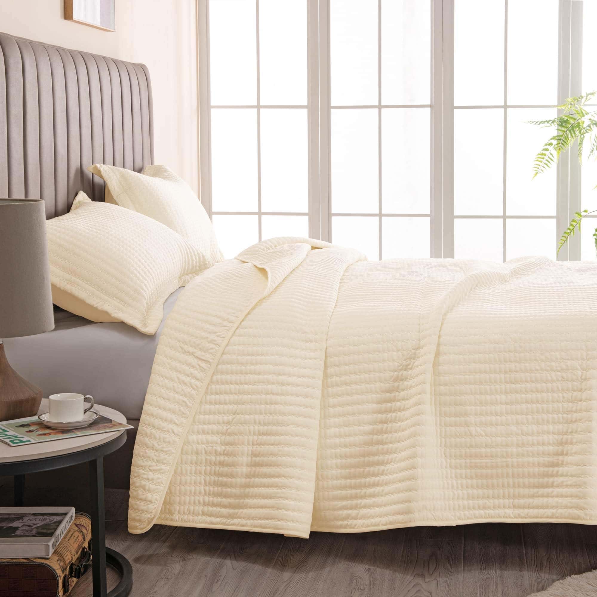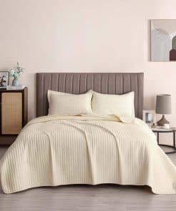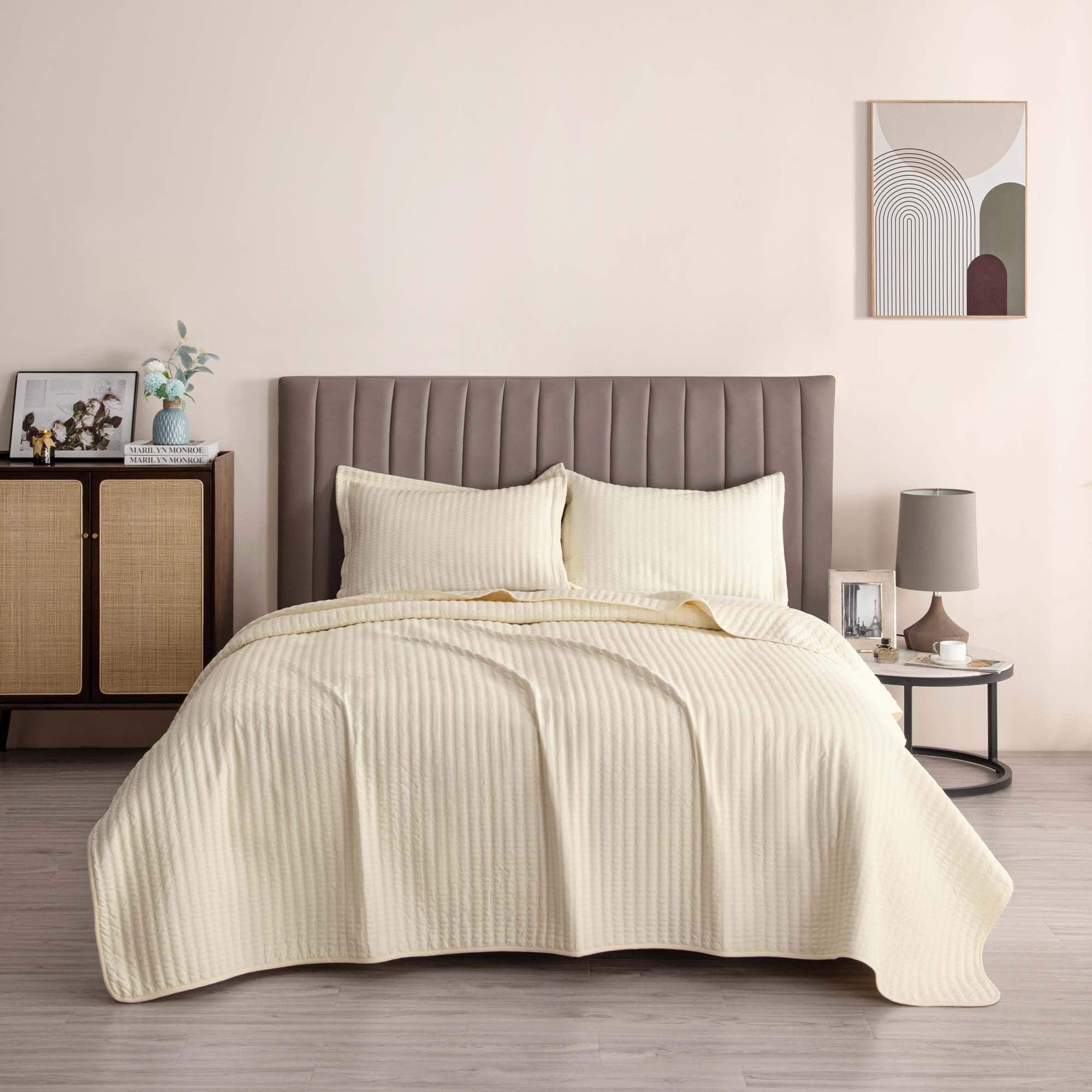 Estiloso, ultra suave y cómodo: Este juego de colcha de color sólido neutral cuenta con un material duradero y un diseño de puntada en canal único que te mantendrá cómodo durante las noches de verano. Esta colcha está diseñada para ser utilizada en todas las estaciones, pero es perfecta para una noche de verano.