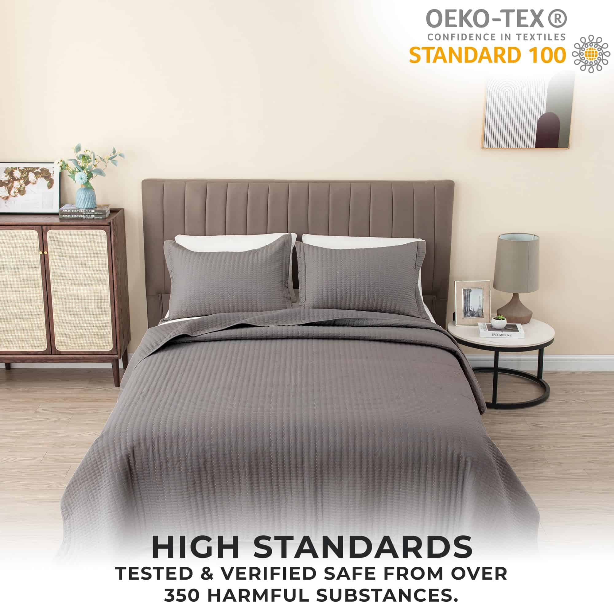 Esta colcha de color sólido neutro presenta una mezcla de materiales duraderos y un diseño de puntadas en canales único que te mantendrá cómodo durante las noches de verano. Esta colcha está diseñada para usarse en todas las estaciones, pero es perfecta para una noche de verano. Lavable a máquina, en frío, secar en ciclo suave, planchar caliente si es necesario. Un juego de ropa de cama que es una colcha texturizada duradera y de alta calidad. Diseñado para un uso duradero y disfrute. La satisfacción del cliente es de suma importancia para nosotros. Estamos seguros de que te encantarán nuestros productos, pero si no estás satisfecho, nuestro equipo de servicio al cliente con sede en Nueva Inglaterra trabajará contigo para solucionarlo.